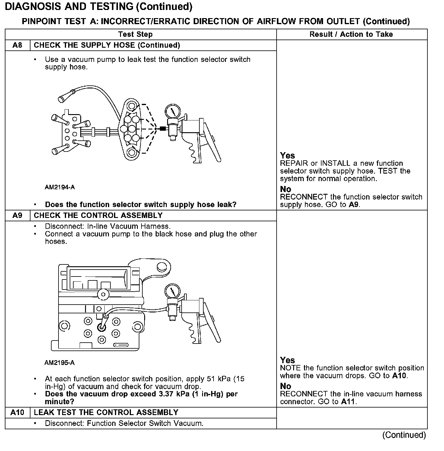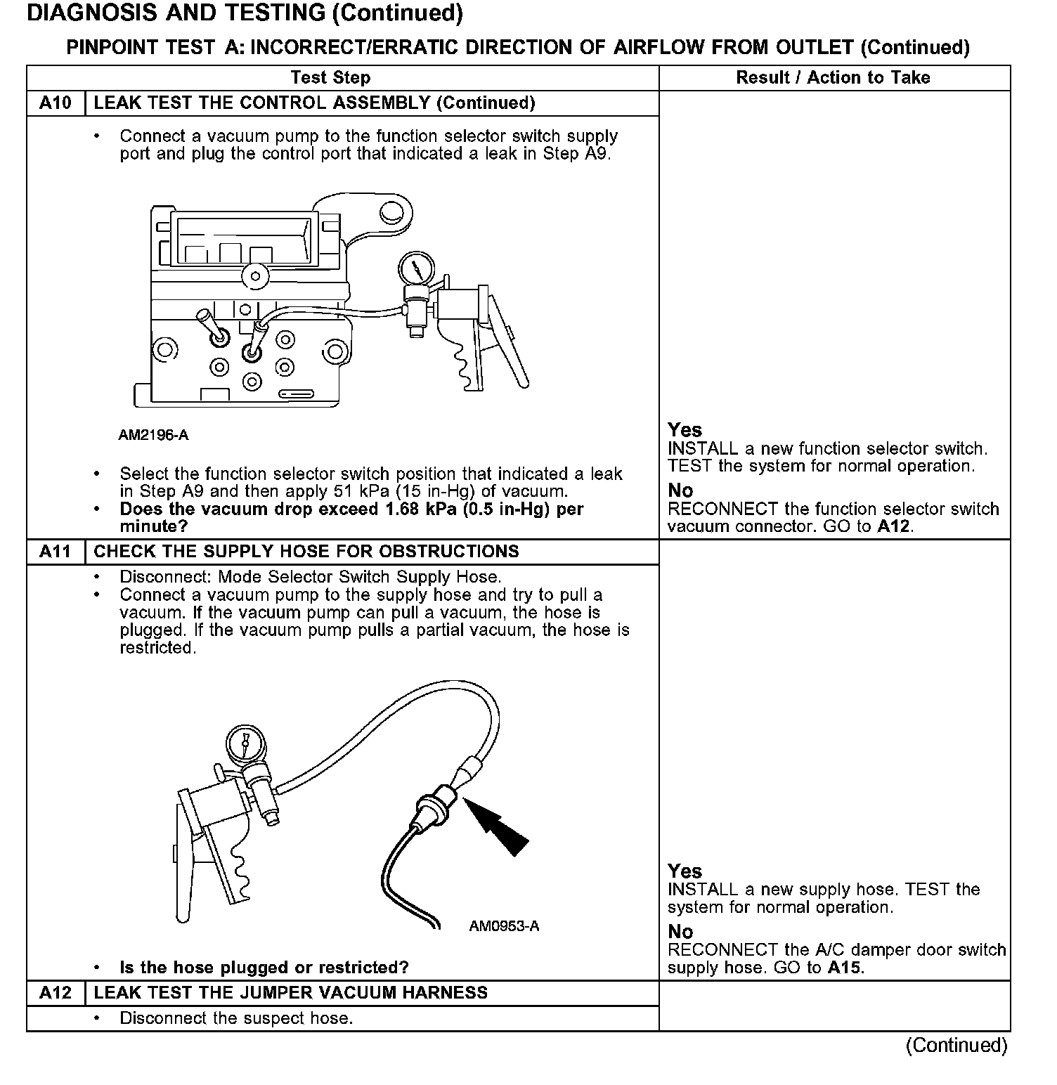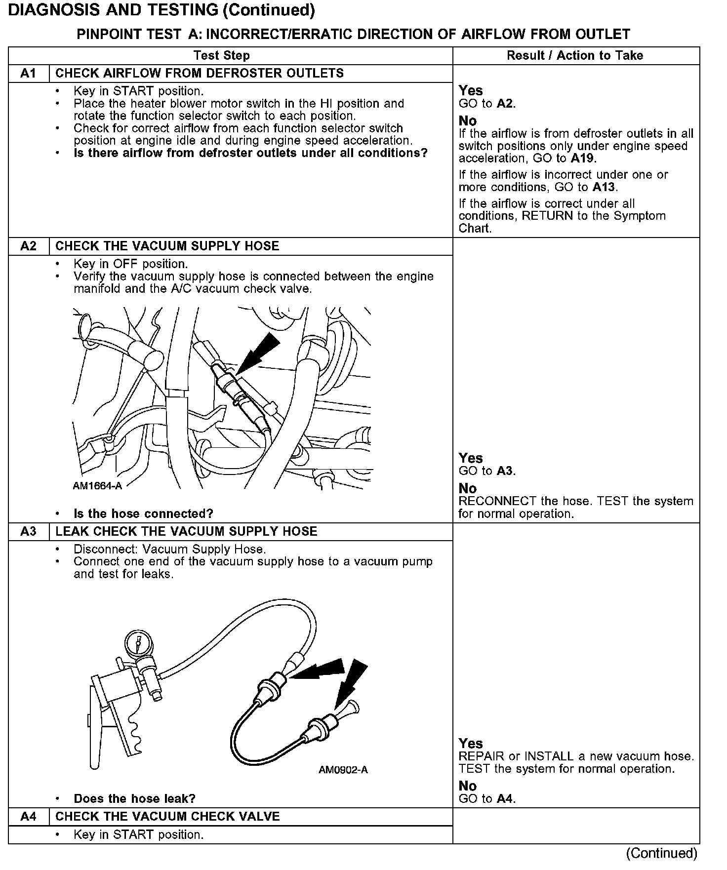 PINPOINT TEST A: INSUFFICIENT/ERRATIC DIRECTION OF AIRFLOW FROM OUTLET