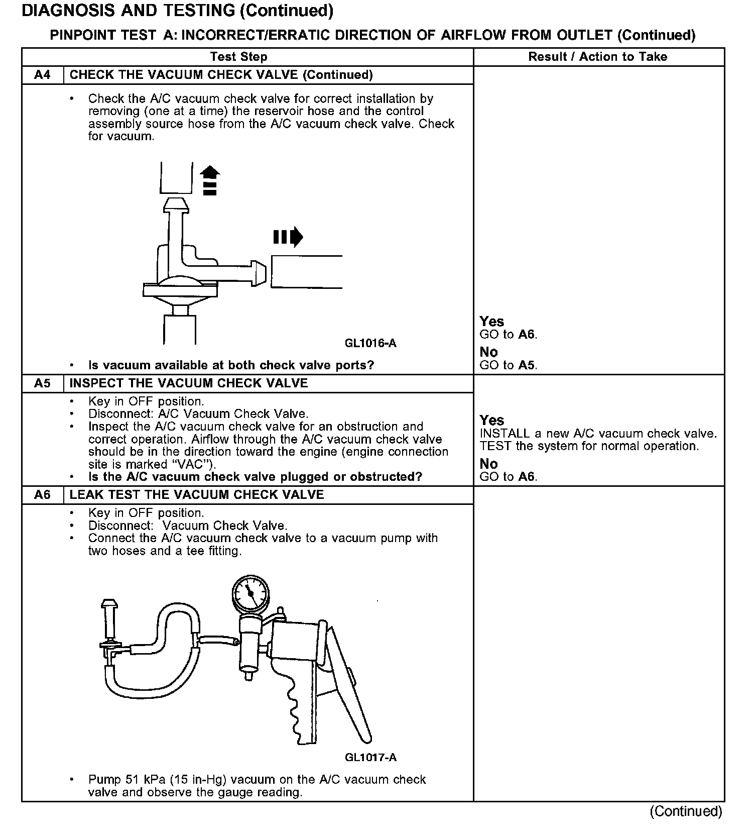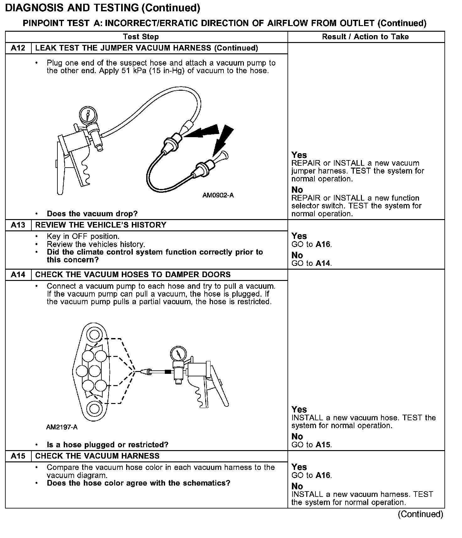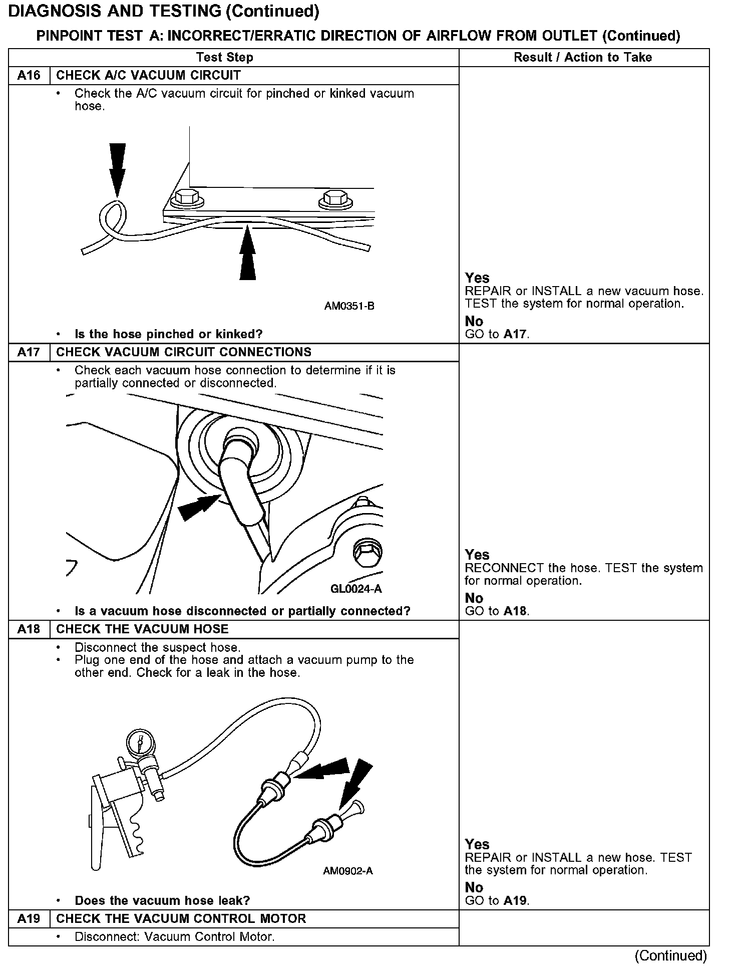 PINPOINT TEST A: INSUFFICIENT/ERRATIC DIRECTION OF AIRFLOW FROM OUTLET