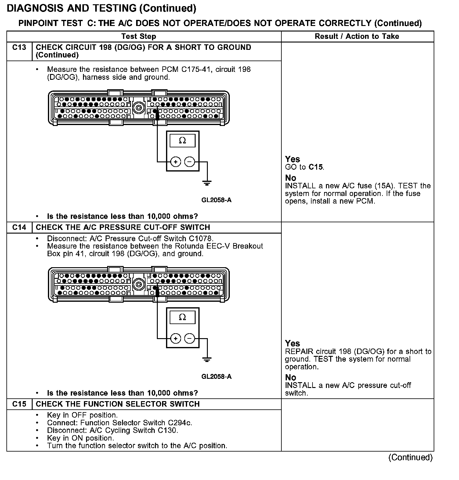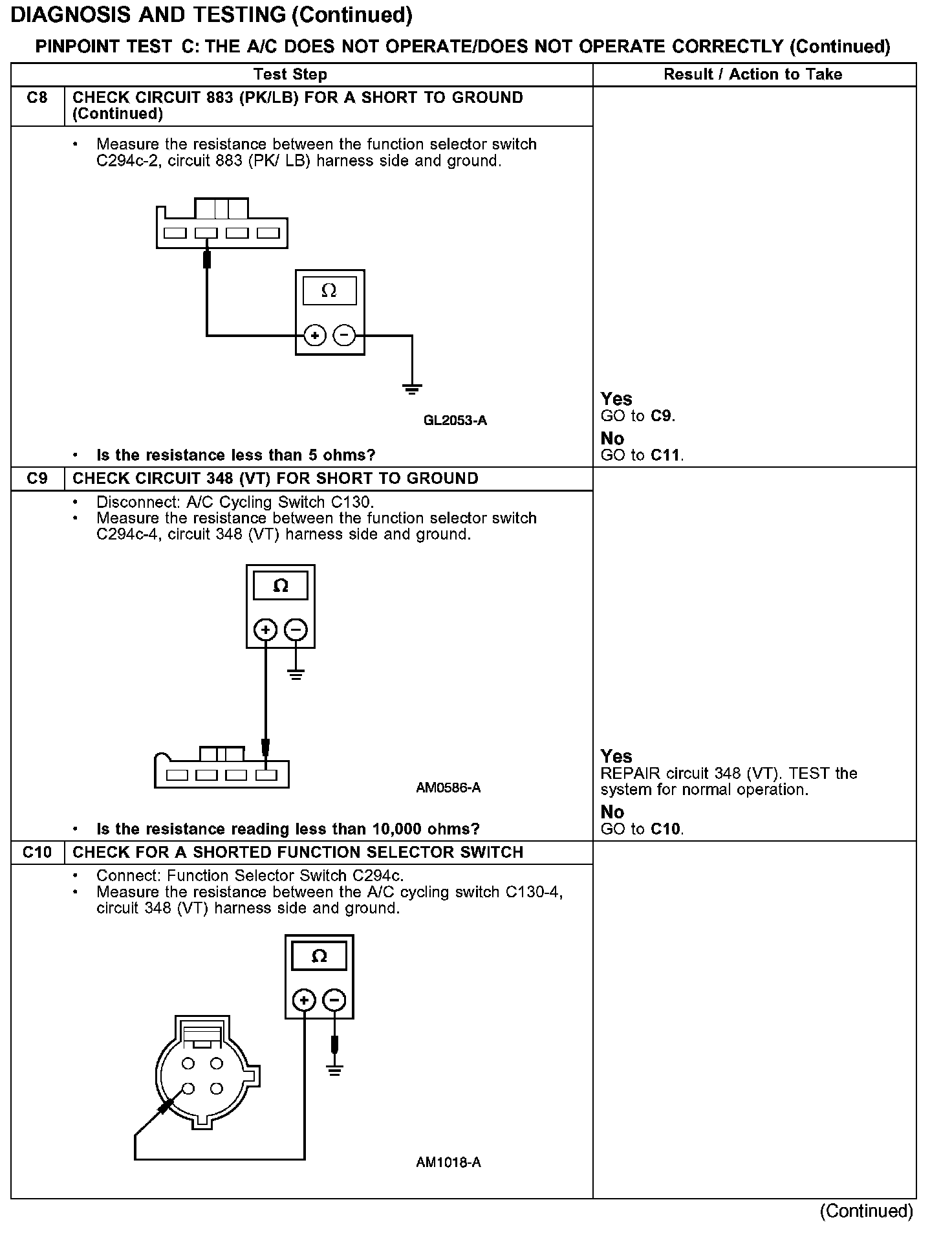 PINPOINT TEST C: THE A/C DOES NOT OPERATE/DOES NOT OPERATE CORRECTLY
