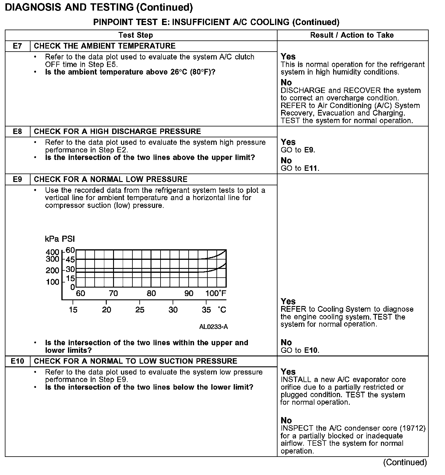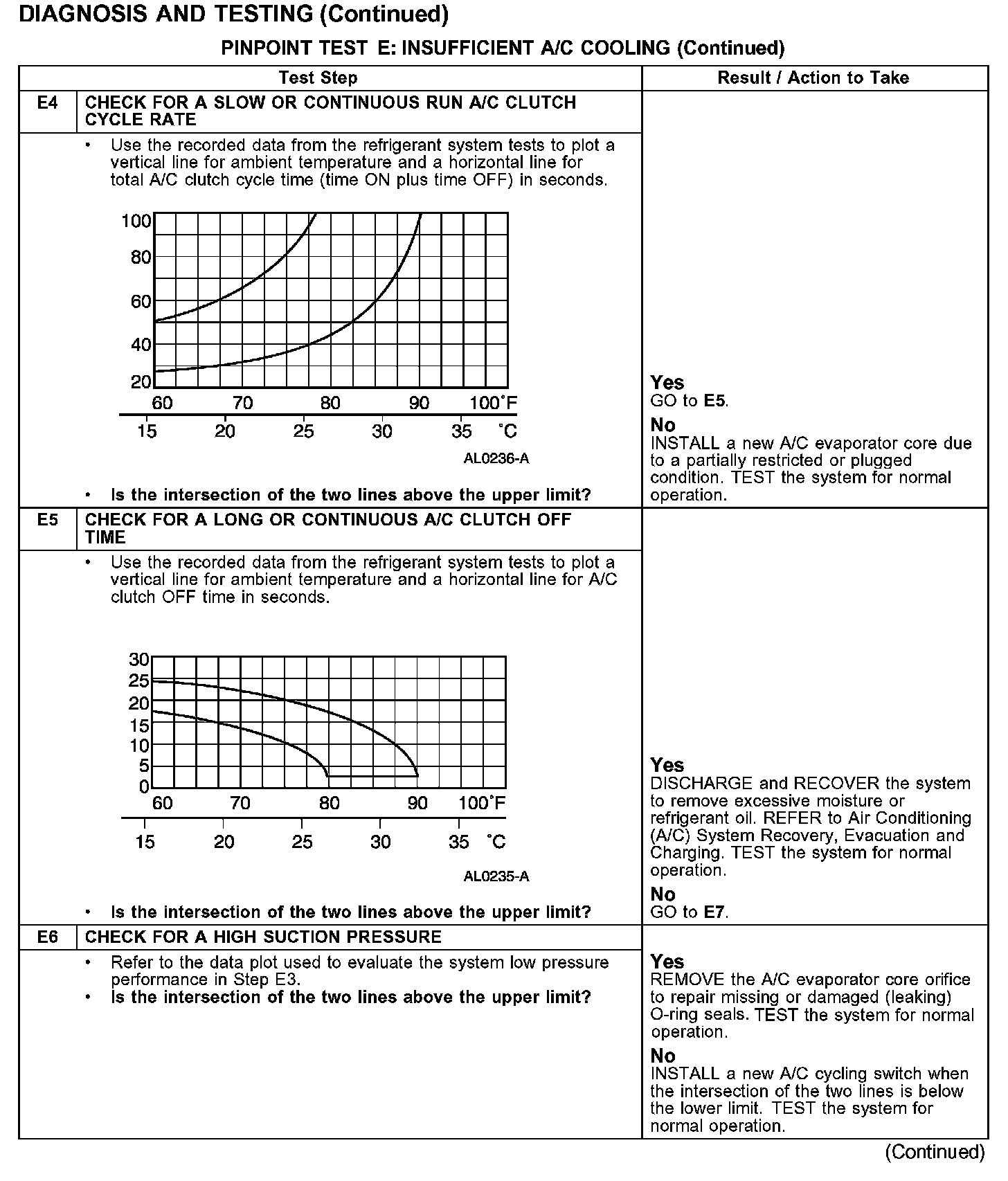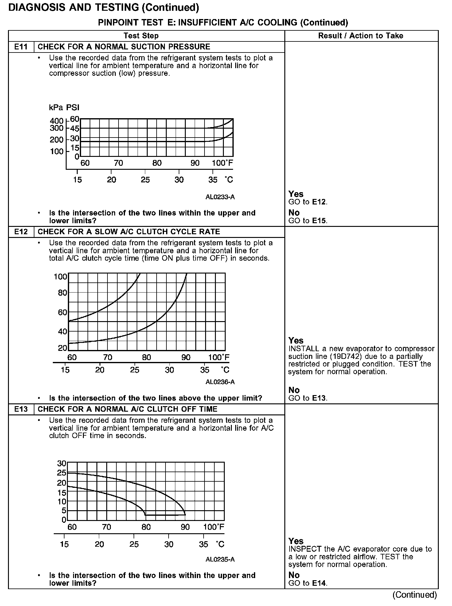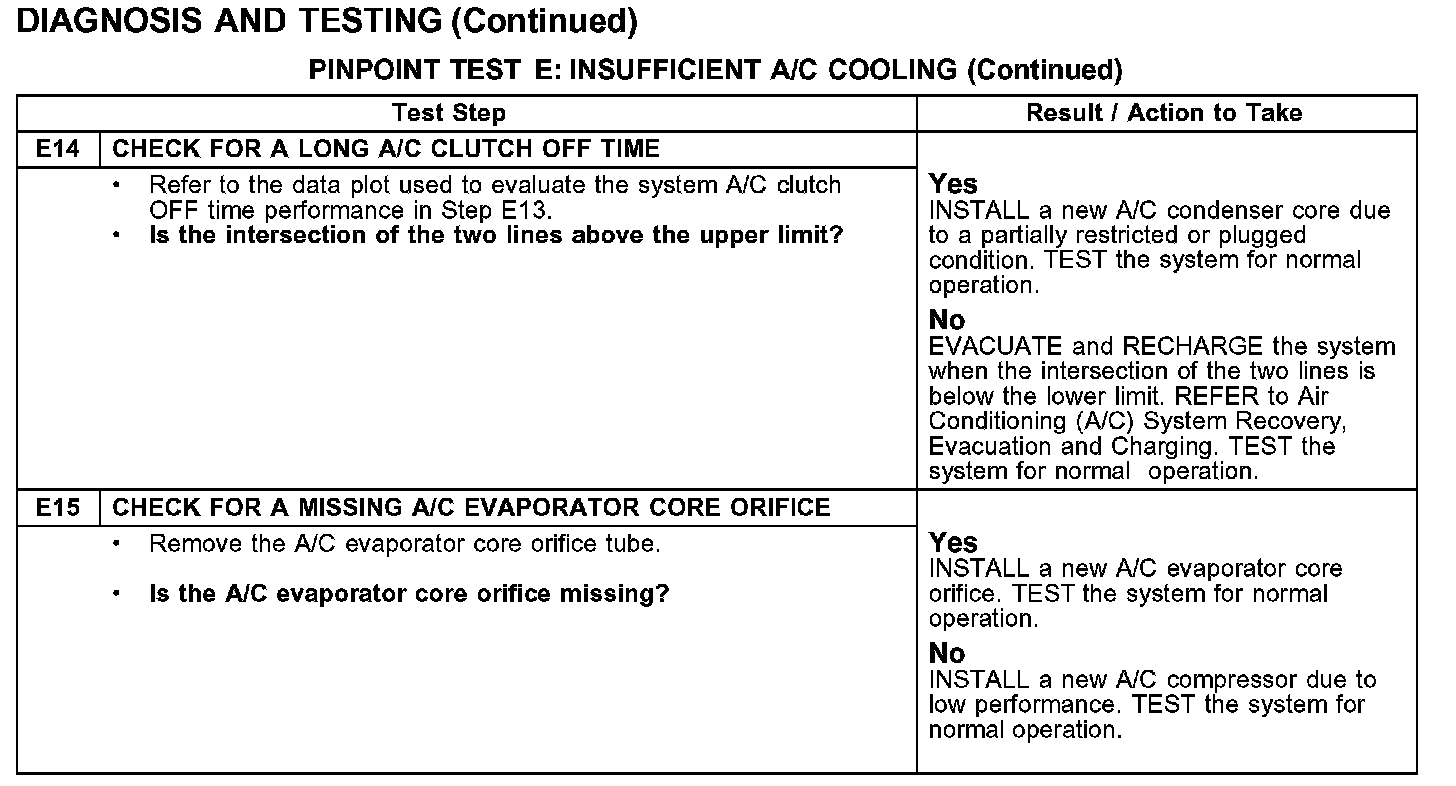 PINPOINT TEST E: INSUFFICIENT A/C COOLING
