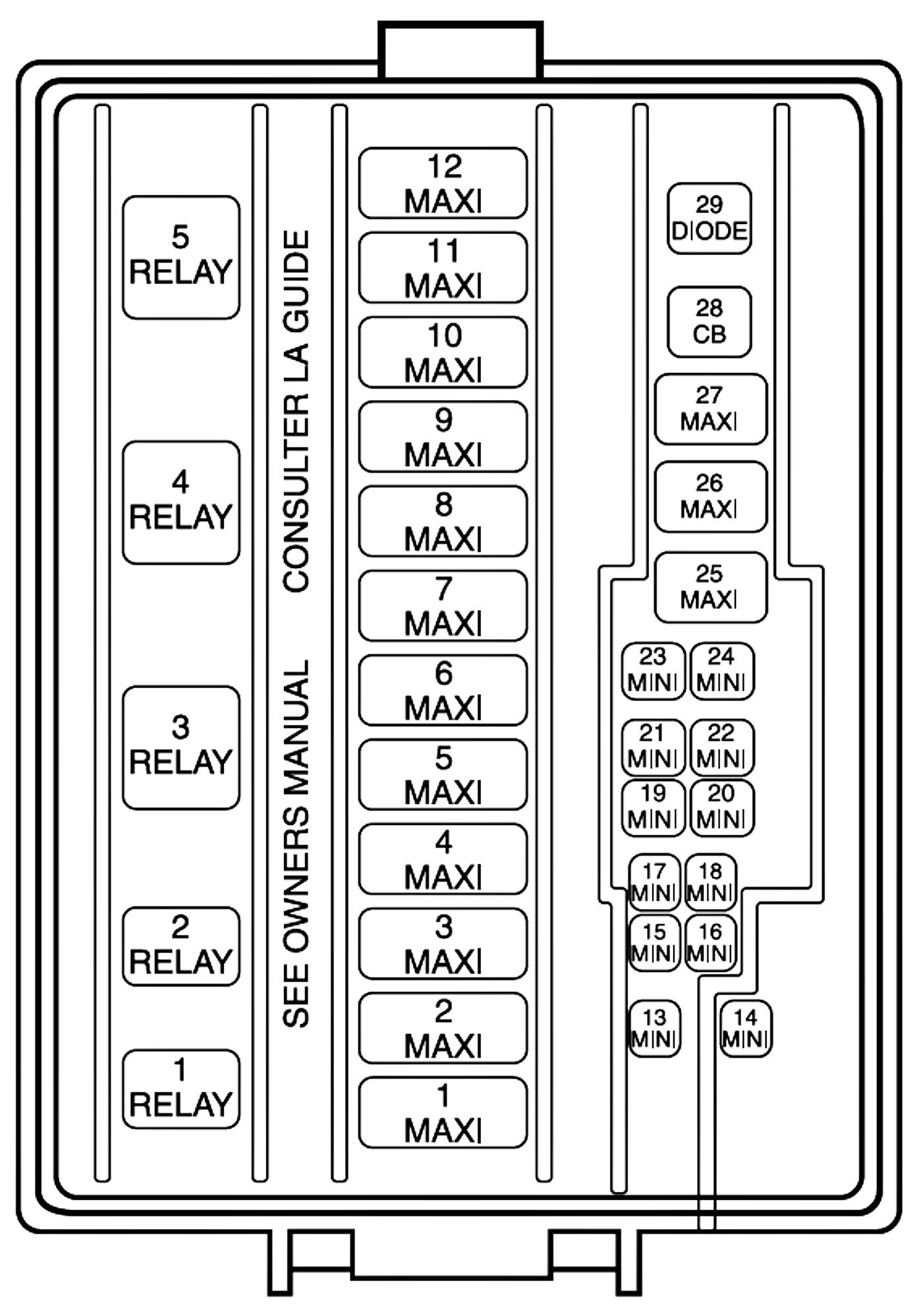 ALLDATA Editor's Note: Ford identifies this one component by 2 different names. Users have reported success comparing these images to determine Application/ID or Location of Fuses and Relays with the Power Distribution Box / Battery Junction Box (BJB).
