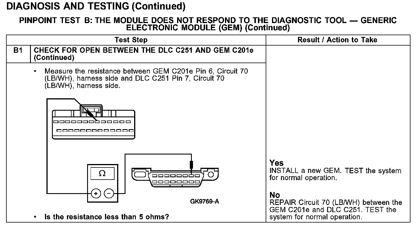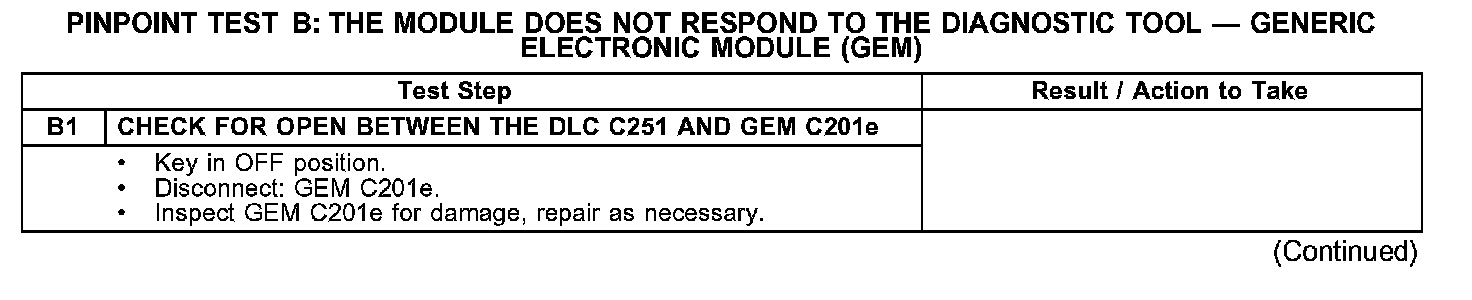 PINPOINT TEST B: THE MODULE DOES NOT RESPOND TO THE DIAGNOSTIC TOOL - GENERIC ELECTRONIC MODULE (GEM)
