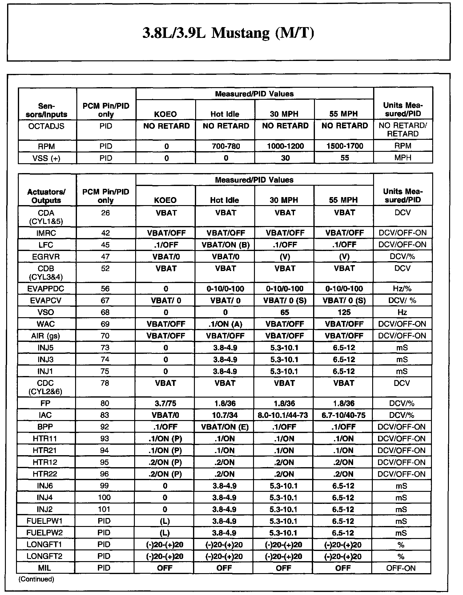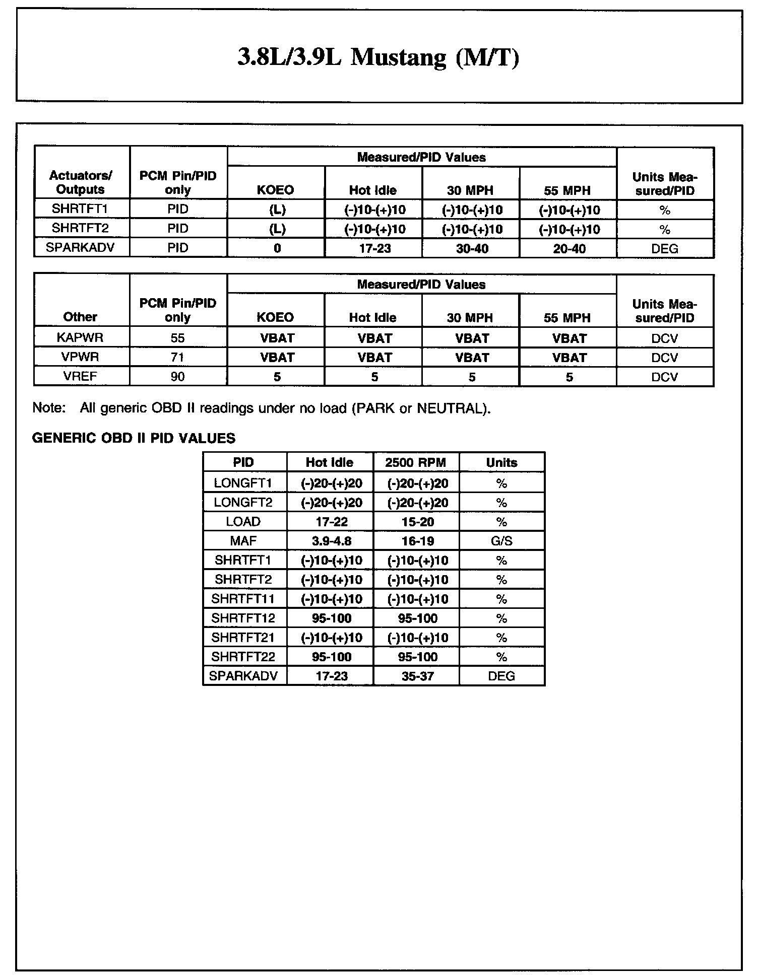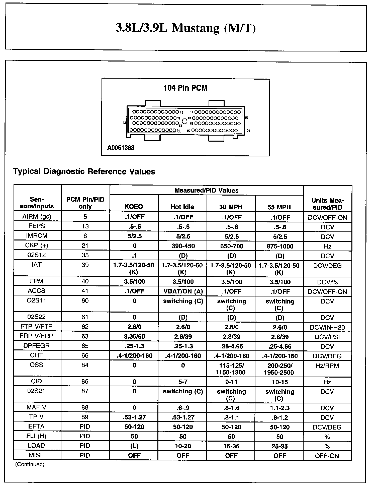 3.8L/3.9L Mustang (M/T)