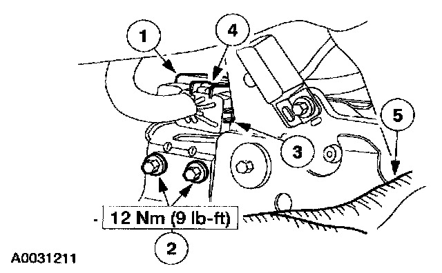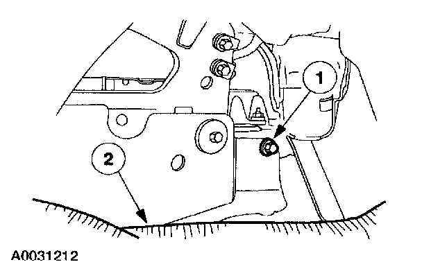 2. Remove the right hand restraints control module (RCM) bracket retaining bolt.