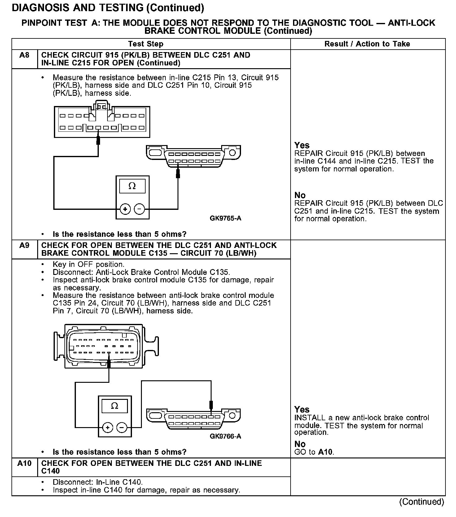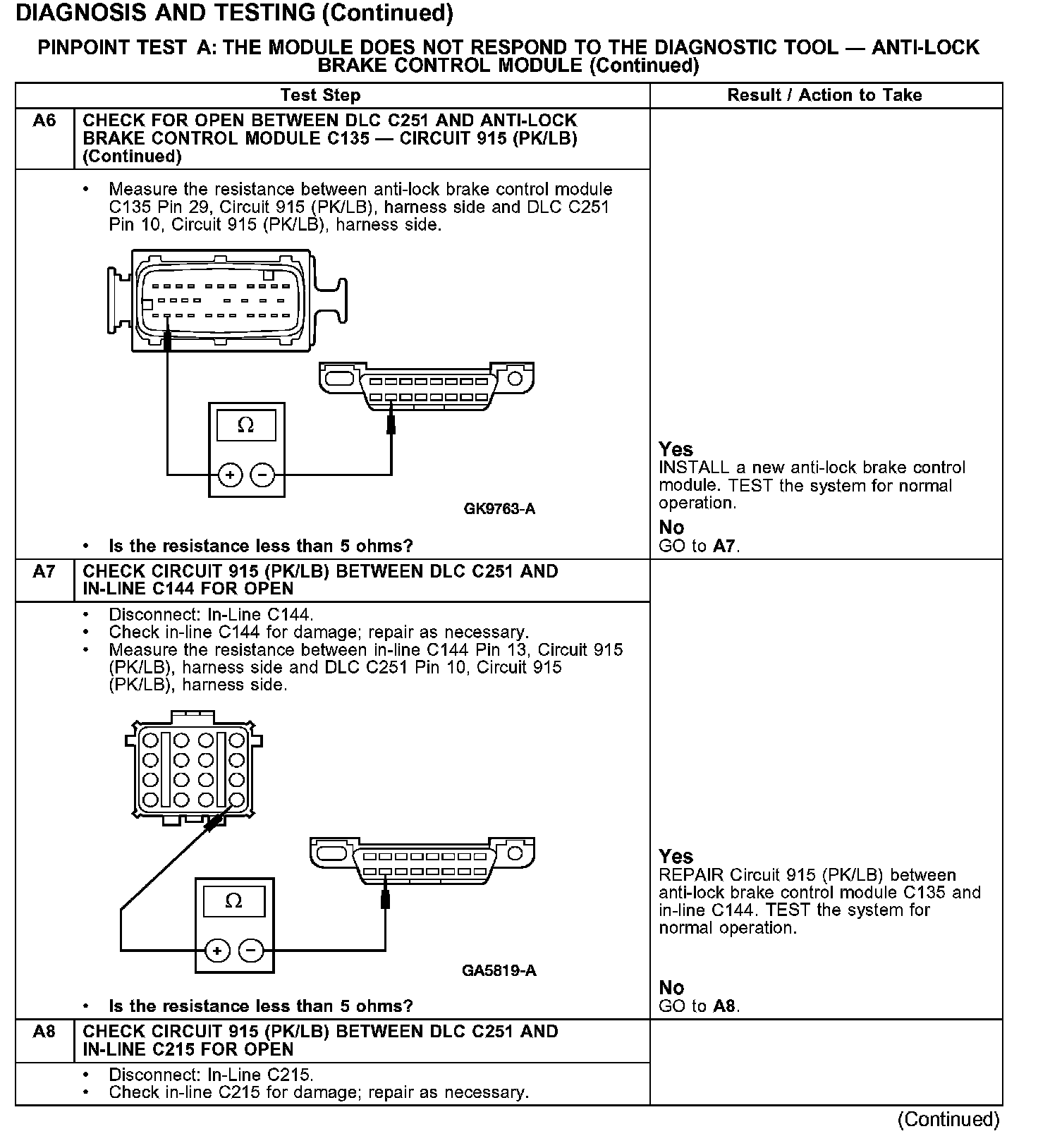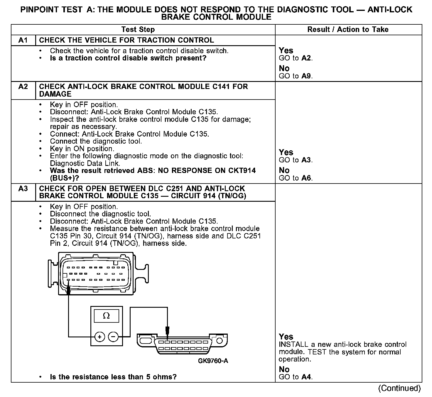 PINPOINT TEST A: THE MODULE DOES NOT RESPOND TO THE DIAGNOSTIC TOOL - ANTI-LOCK BRAKE CONTROL MODULE