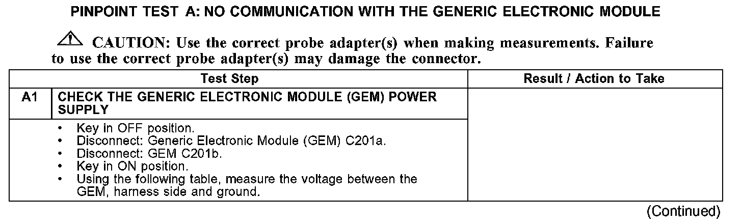 PINPOINT TEST A: NO COMMUNICATION WITH THE GENERIC ELECTRONIC MODULE