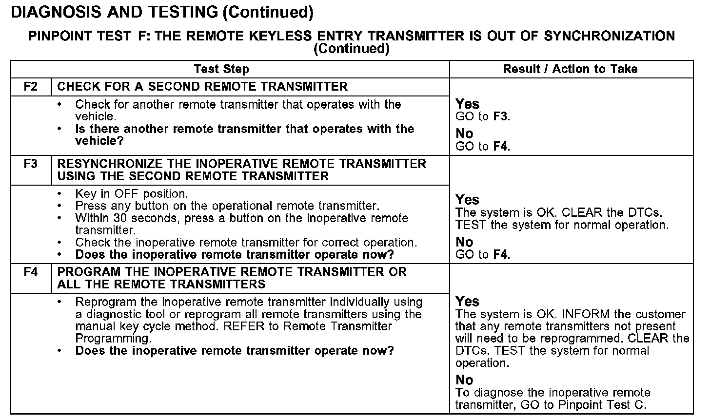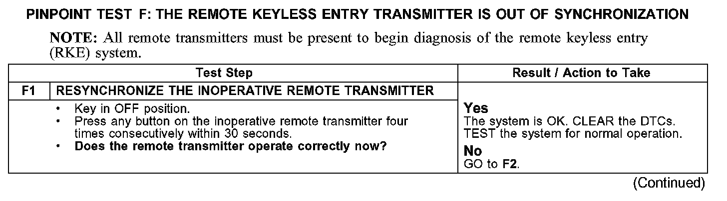 PINPOINT TEST F: THE REMOTE KEYLESS ENTRY TRANSMITTER IS OUT OF SYNCHRONIZATION