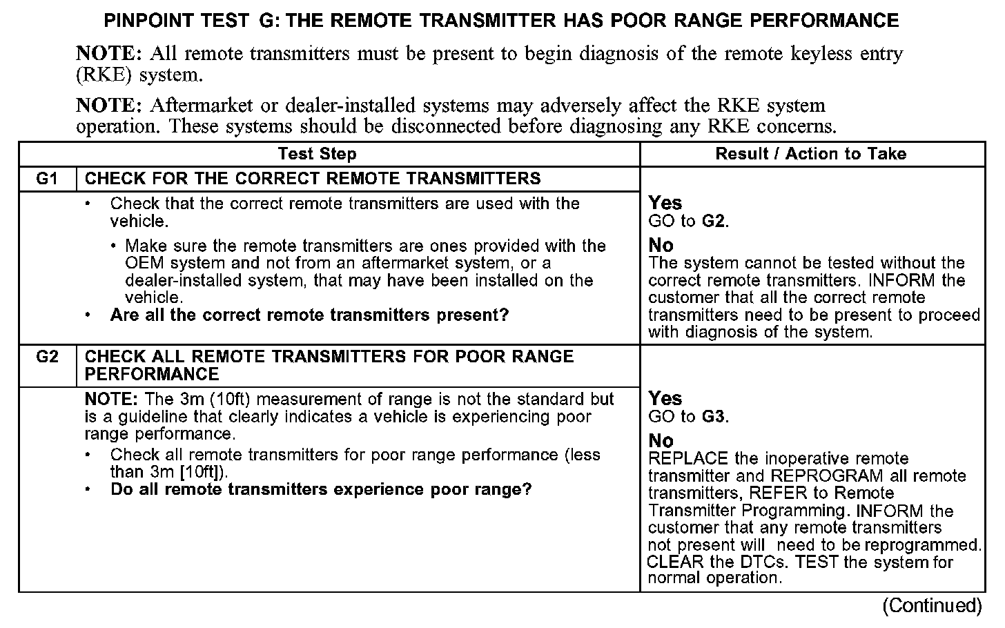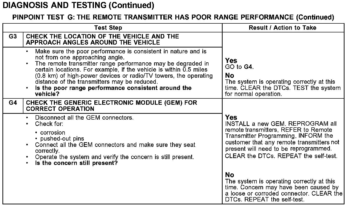 PINPOINT TEST G: THE REMOTE TRANSMITTER HAS POOR RANGE PERFORMANCE