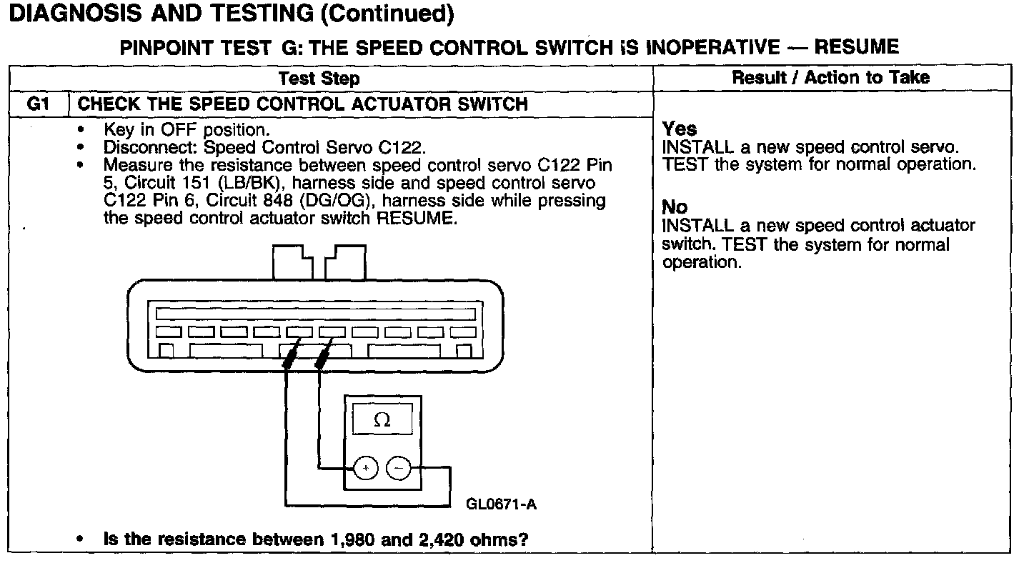 PINPOINT TEST G: THE SPEED CONTROL SWITCH IS INOPERATIVE - RESUME