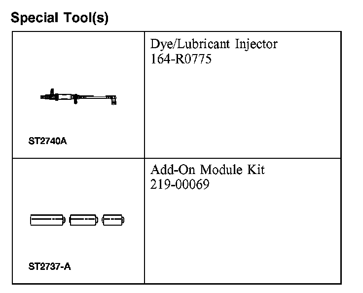 NOTE: If fluorescent leak detection dye is also to be added during A/C charging, the dye may be added to the dye/lubricant injector along with the refrigerant oil.