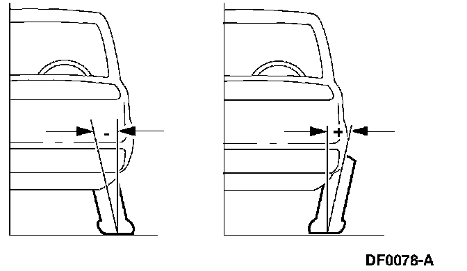 Wheel Alignment AnglesCamber and toe are adjustable on the front suspension systems. Front camber is adjusted by moving the top of the strut and spring assembly. Rear camber is adjusted by means of eccentric cams on the rear upper arms. Caster is preset at the factory and should only be adjusted after all other possible sources have been inspected and corrected as necessary. Front toe is adjusted by the use of the front wheel spindle tie rod.