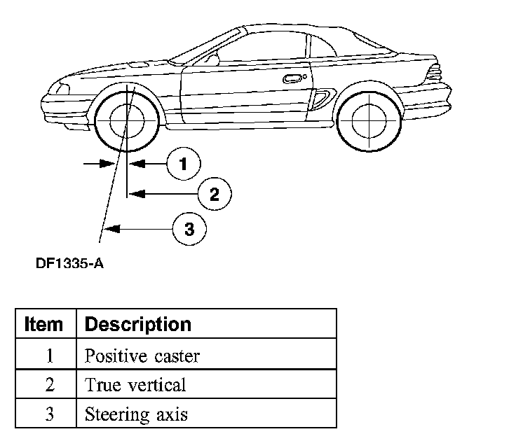 Caster is the deviation from vertical of an imaginary line drawn through the ball joints when viewed from the side. Caster specifications will give the vehicle the best directional stability characteristics when loaded and driven. Caster setting is not related to tire wear.