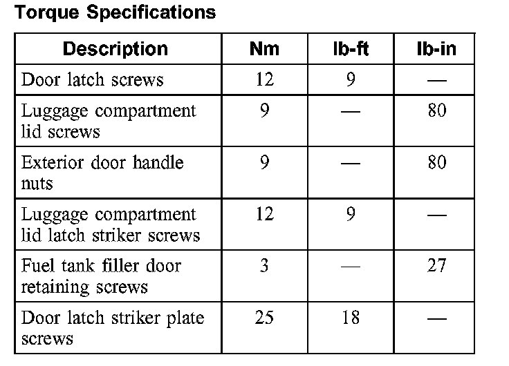 Torque Specifications: