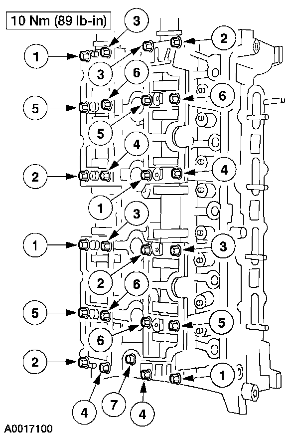 Camshaft cap cluster to cylinder head 10 Nm (89 inch lbs.)