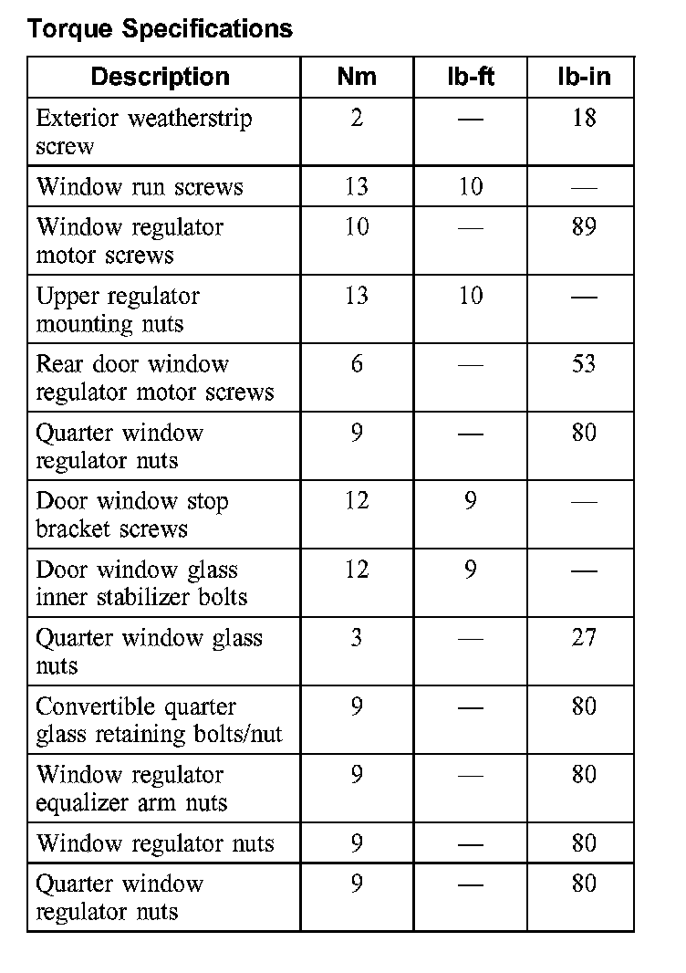 Torque Specifications: