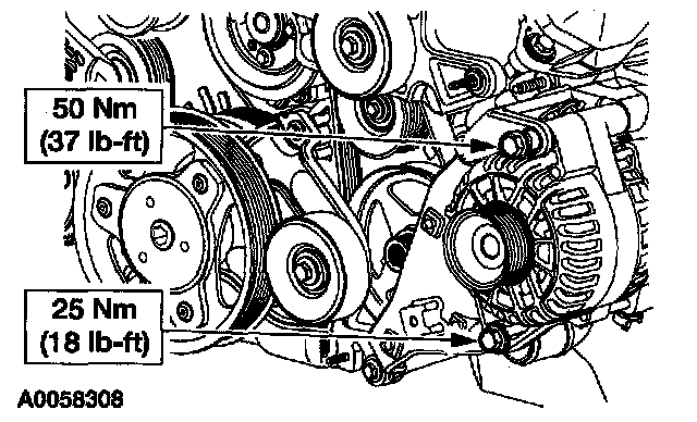 2. Relieve the accessory drive belt tension and remove the belt from the generator pulley.