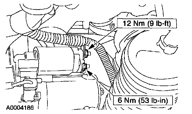- When working in area of the starter motor, be careful to avoid touching hot exhaust components. Failure to follow these instructions can result in personal injury.