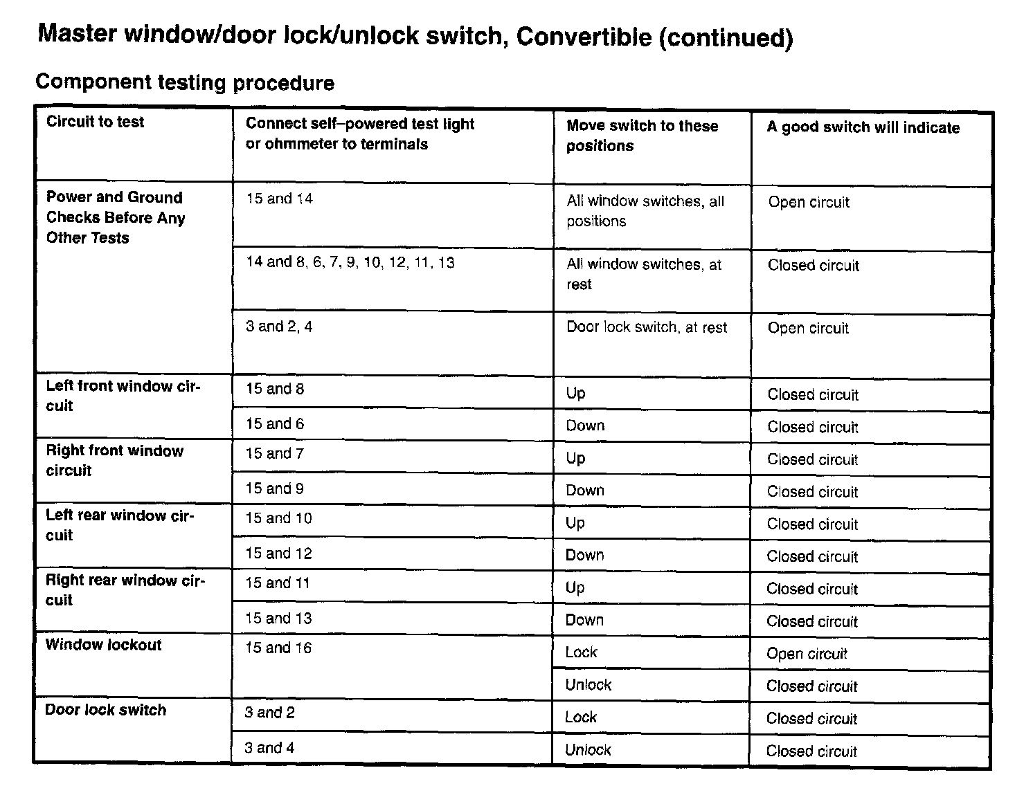 Master Window/Door Lock/Unlock Switch