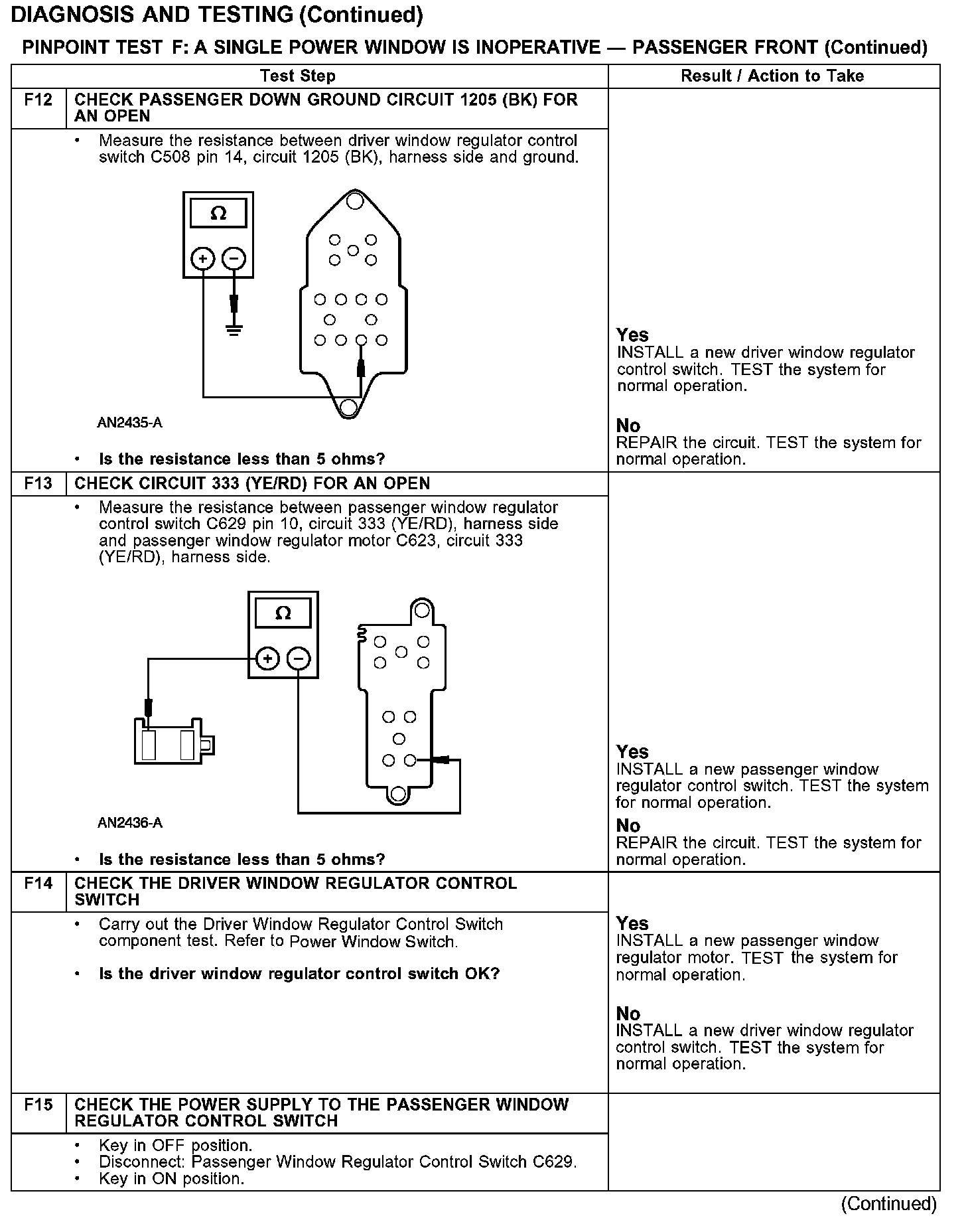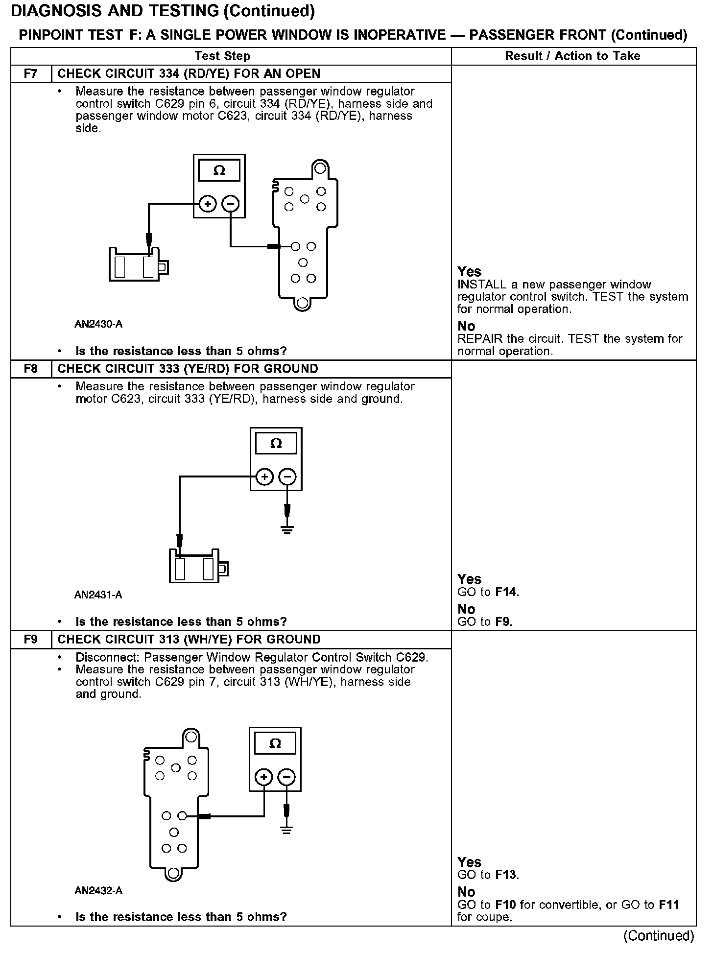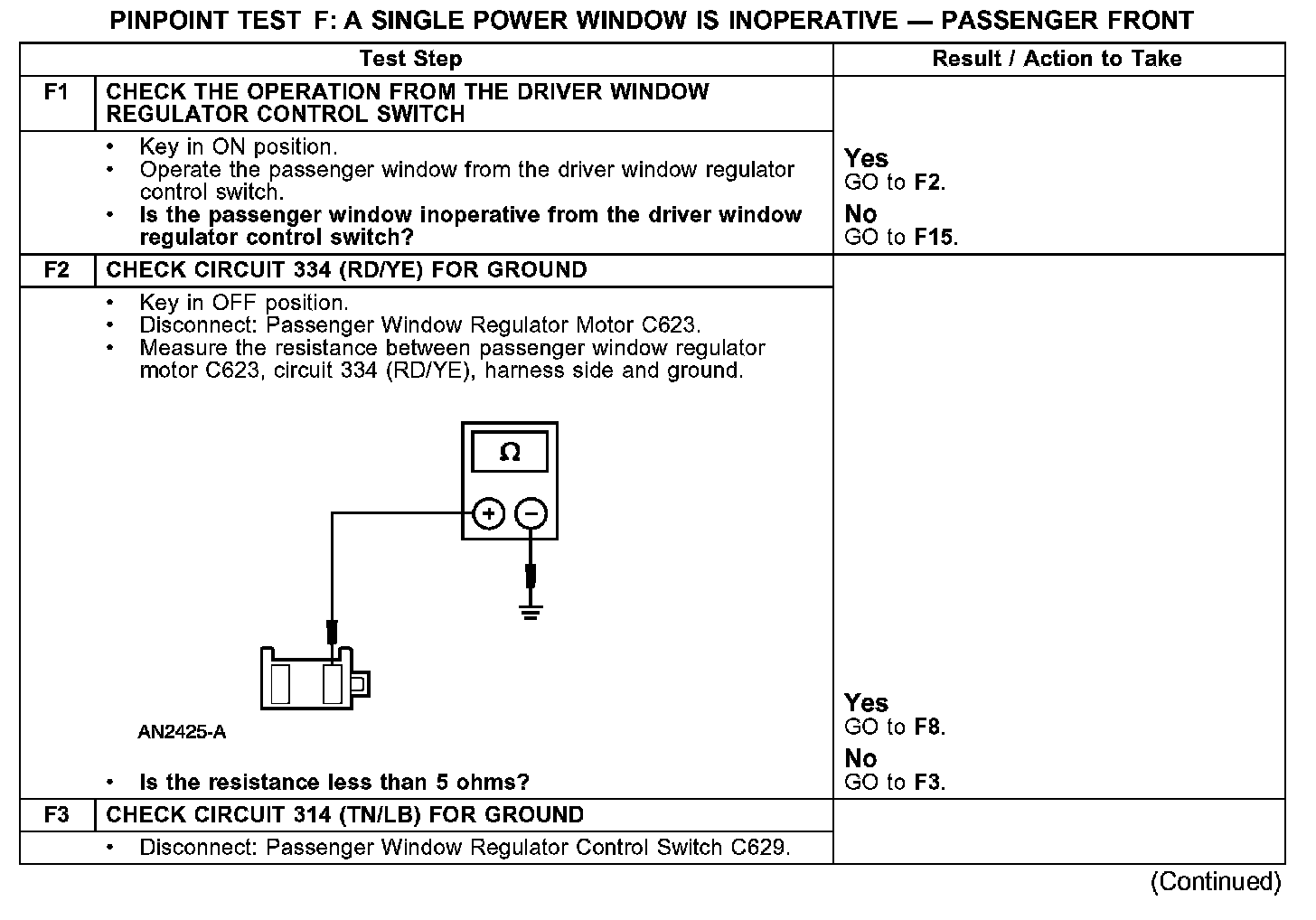 PINPOINT TEST F: A SINGLE POWER WINDOW IS INOPERATIVE - PASSENGER FRONT