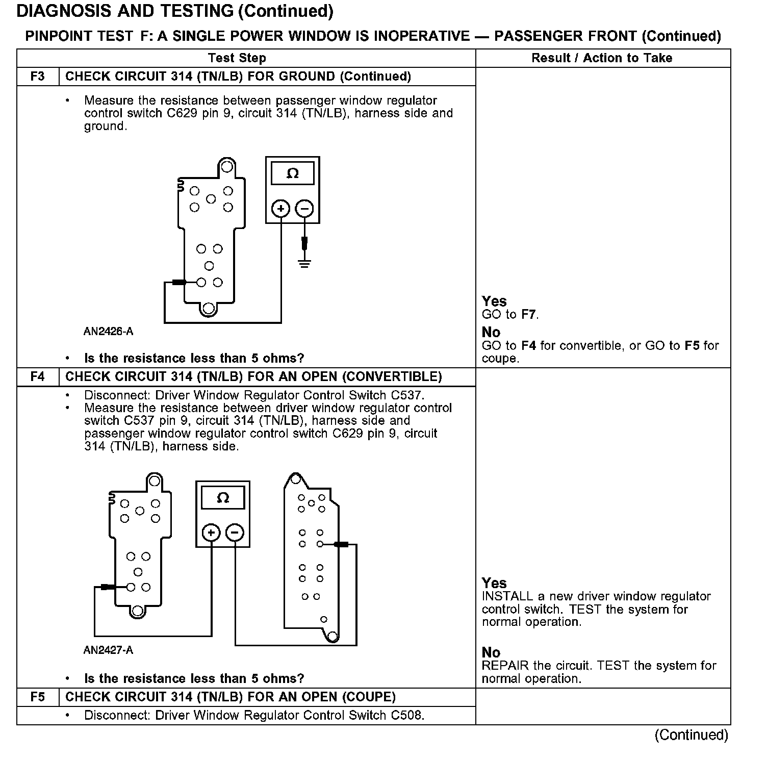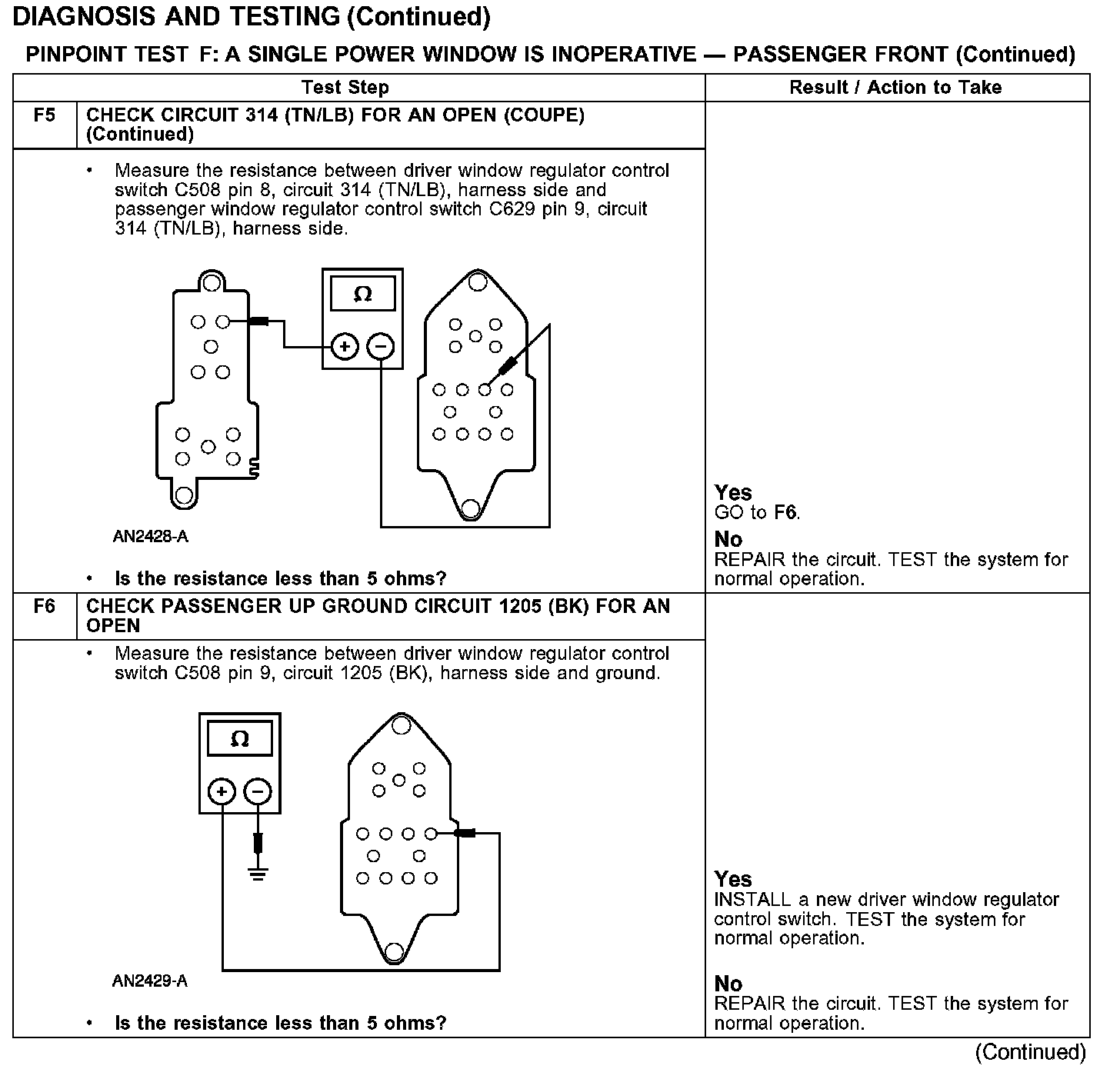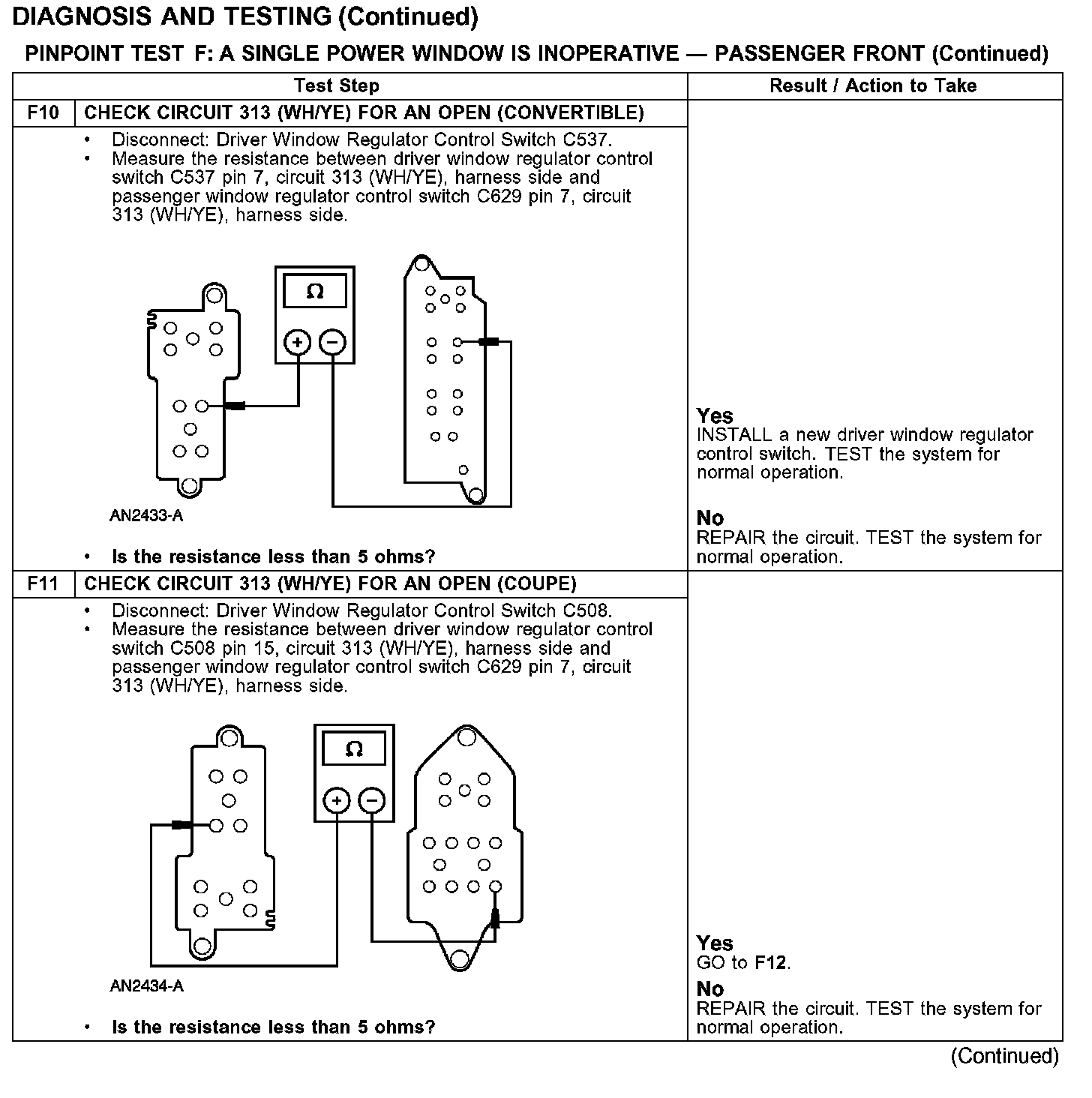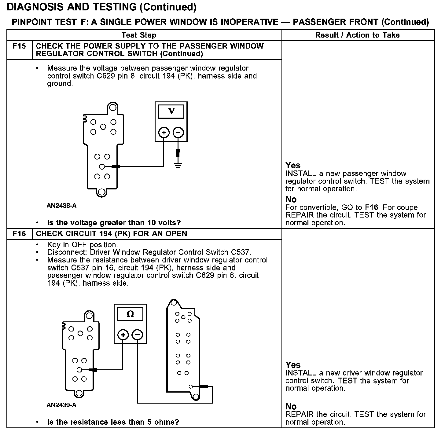 PINPOINT TEST F: A SINGLE POWER WINDOW IS INOPERATIVE - PASSENGER FRONT