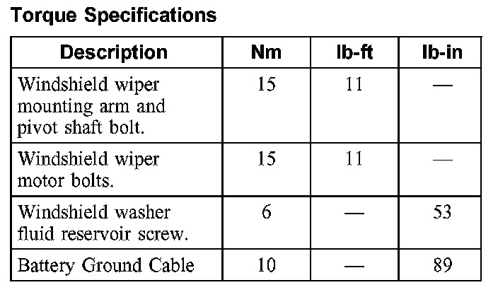 Torque Specifications: