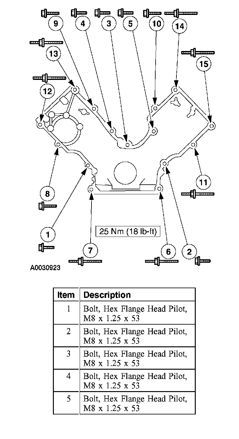Front Cover bolts 25 Nm (18 ft.lbs.)