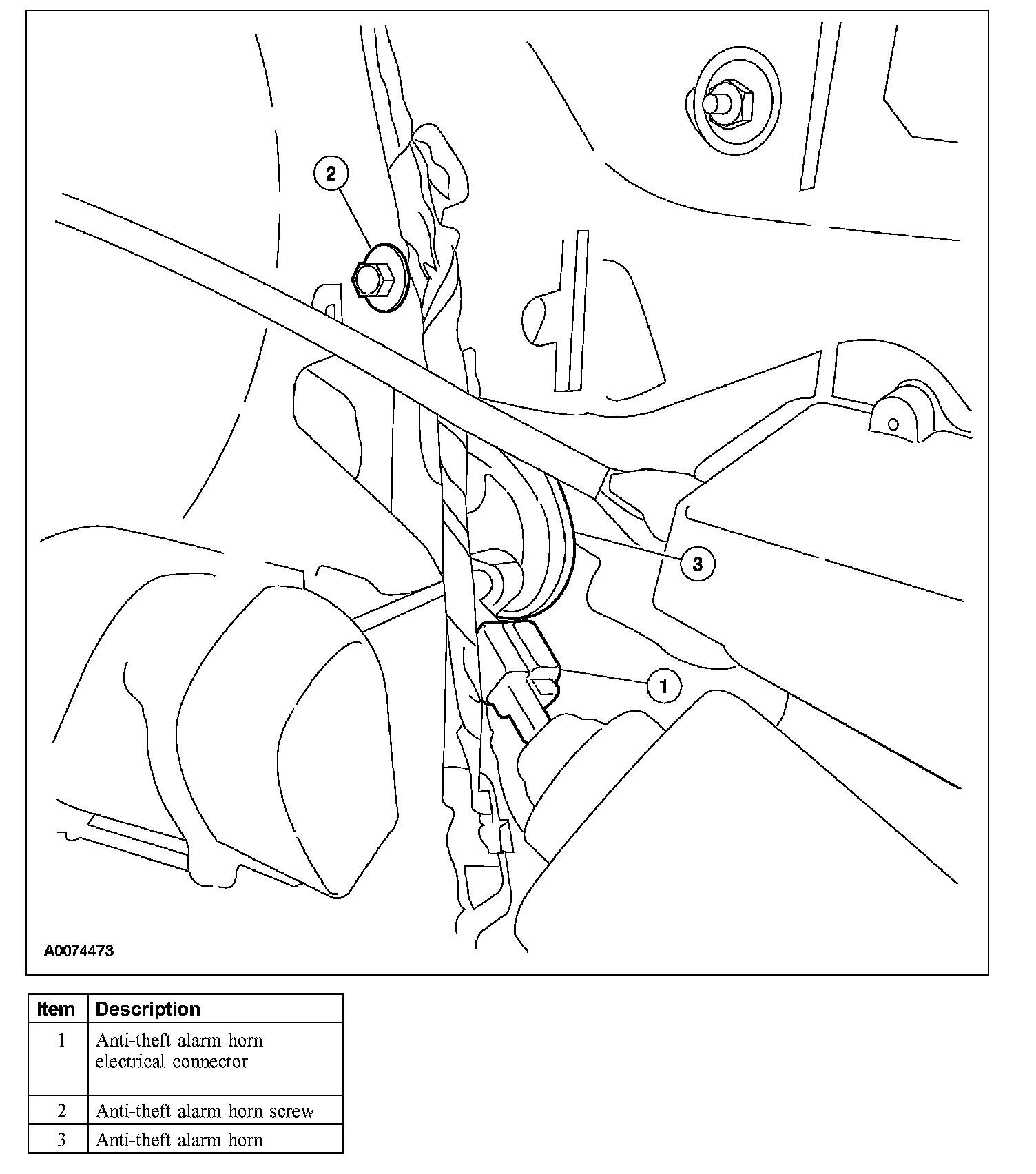 3. Disconnect the anti-theft alarm horn electrical connector.