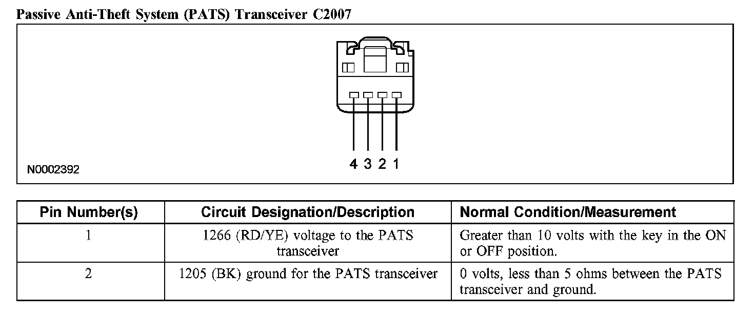 Passive Anti-Theft System (PATS) Transceiver C2007 (Part 2):