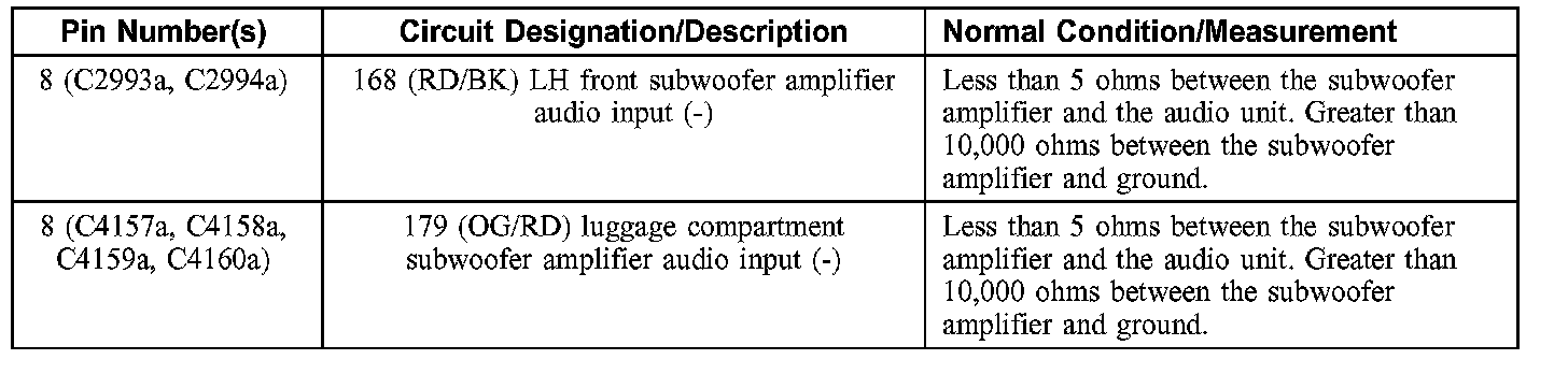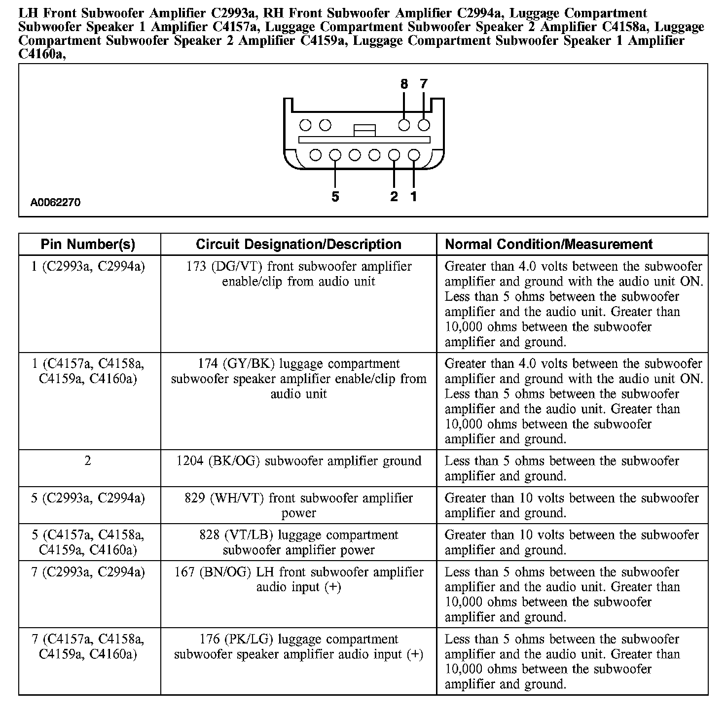 LH Front Subwoofer Amplifier C2993a, RH Front Subwoofer Amplifier C2994a, Luggage Compartment Subwoofer Speaker 1 Amplifier C41