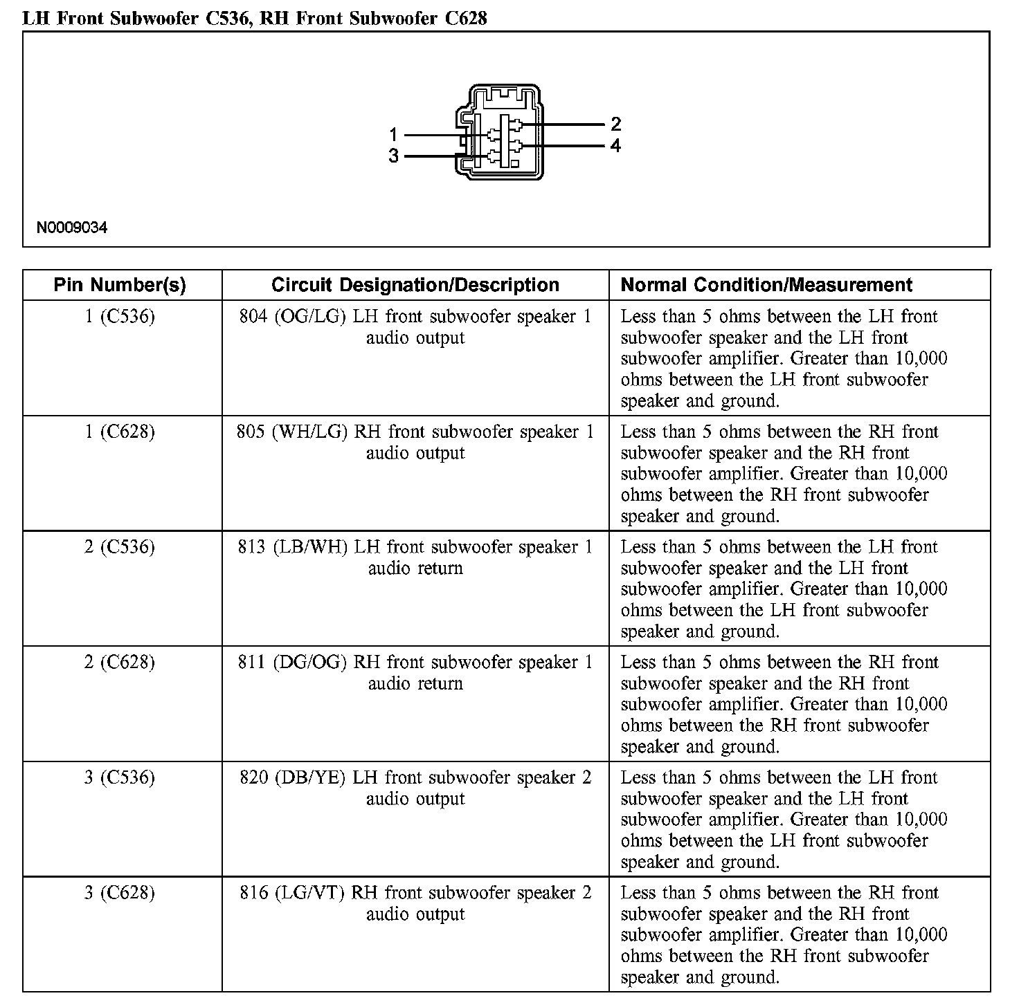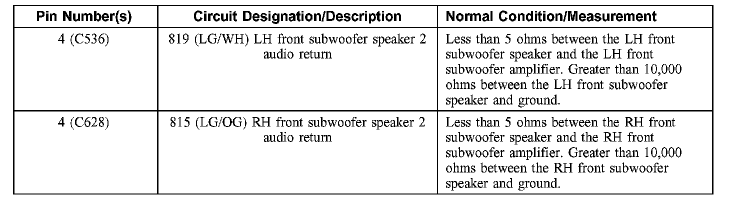 LH Front Subwoofer C536, RH Front Subwoofer C628 (Part 2):