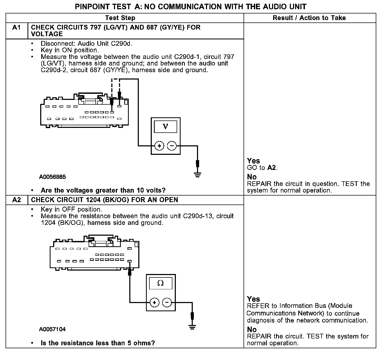 PINPOINT TEST A: NO COMMUNICATION WITH THE AUDIO UNITA1-A2: