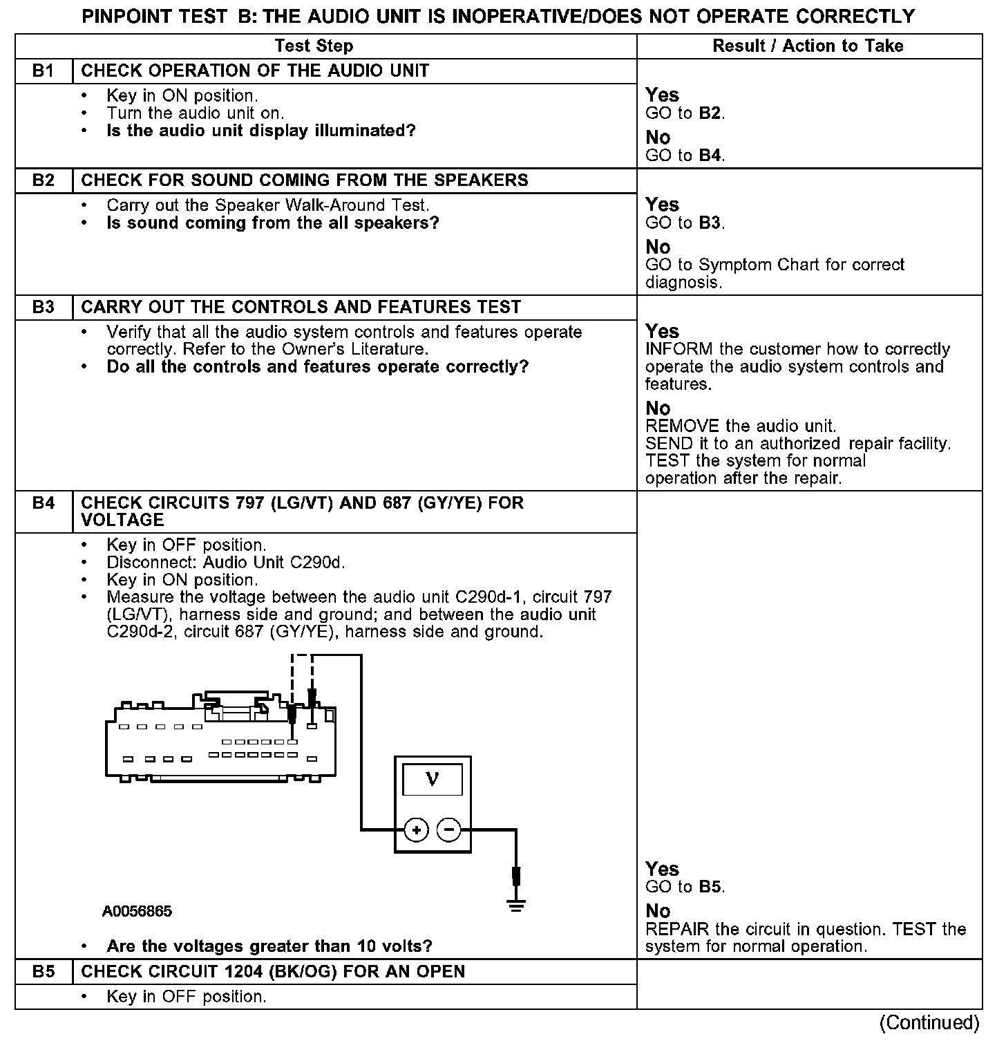 PINPOINT TEST B: THE AUDIO UNIT IS INOPERATIVE/DOES NOT OPERATE CORRECTLYB1-B5: