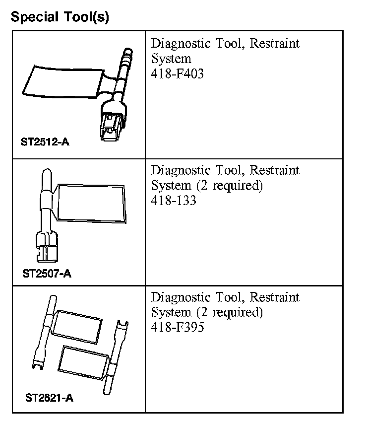 SUPPLEMENTAL RESTRAINT SYSTEM (SRS) DEACTIVATION AND REACTIVATIONSpecial Tool(s):