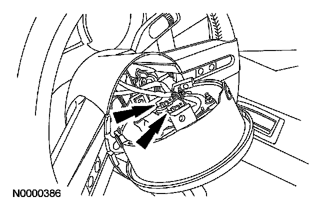9. NOTE: Label the driver air bag module squib number on the driver air bag module electrical connectors before disconnecting.