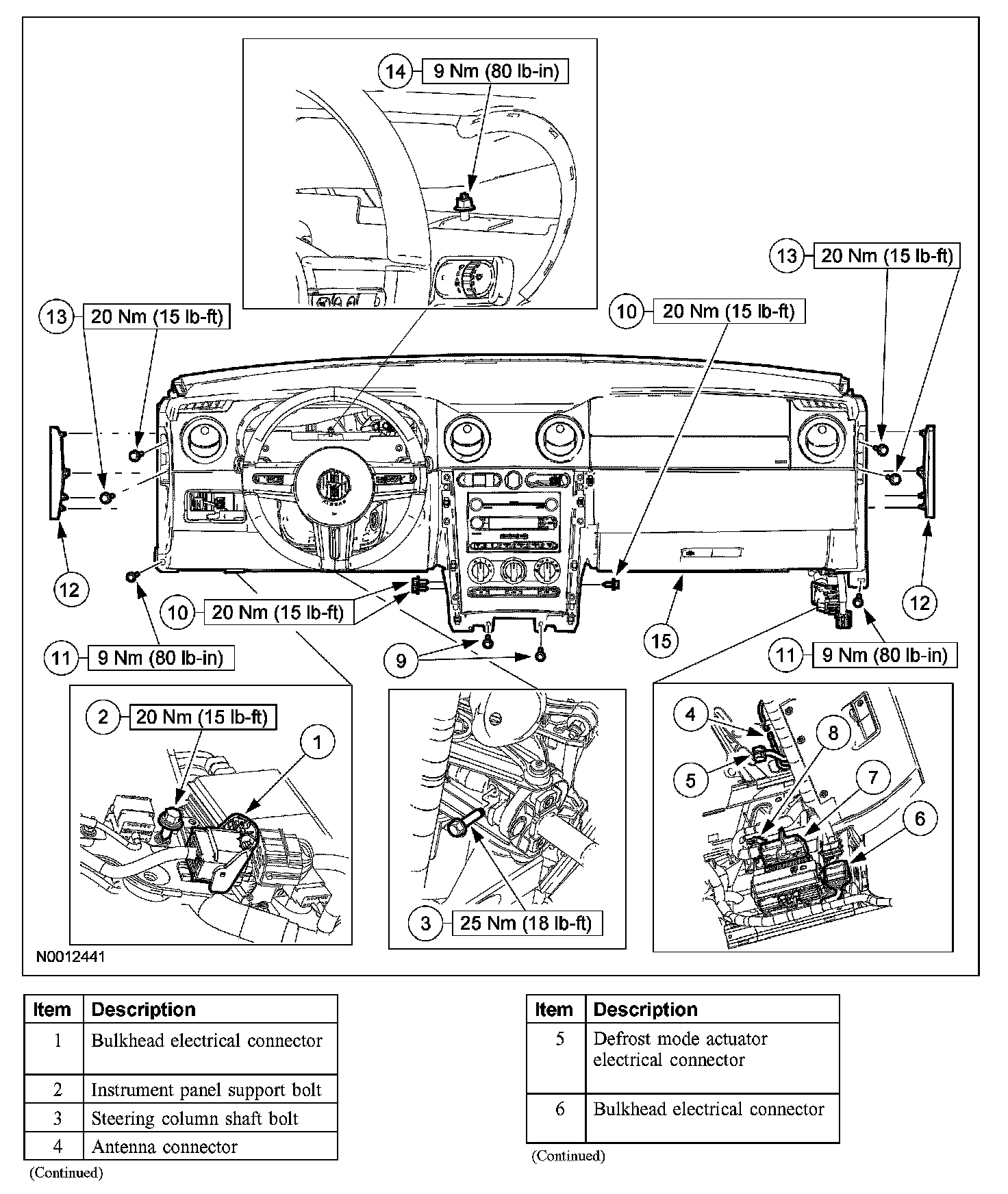 12. Through the instrument cluster opening, loosen the instrument panel cowl top bracket nut.