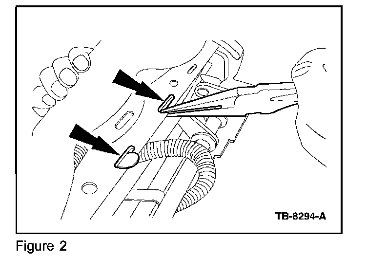 2. Using a needle nose pliers, bend the inside lip of the four (4) flanges toward the rear of the seat, to open the flange slightly. Use a dime to gauge the new opening (Figure 2). The dime should fit tightly when pushed into the adjusted flange opening.