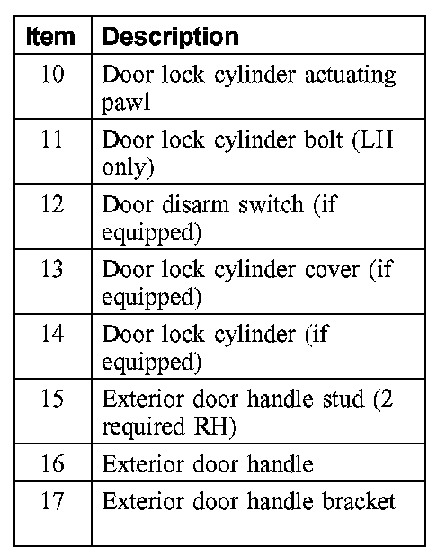 FRONT DOOR HANDLES, LOCKS AND LATCHES - EXPLODED VIEW