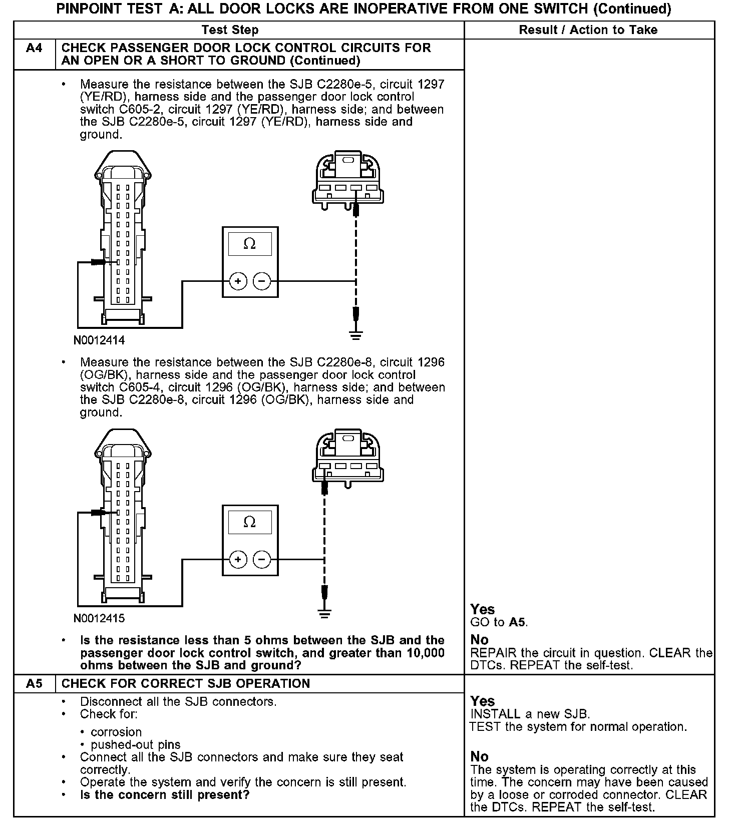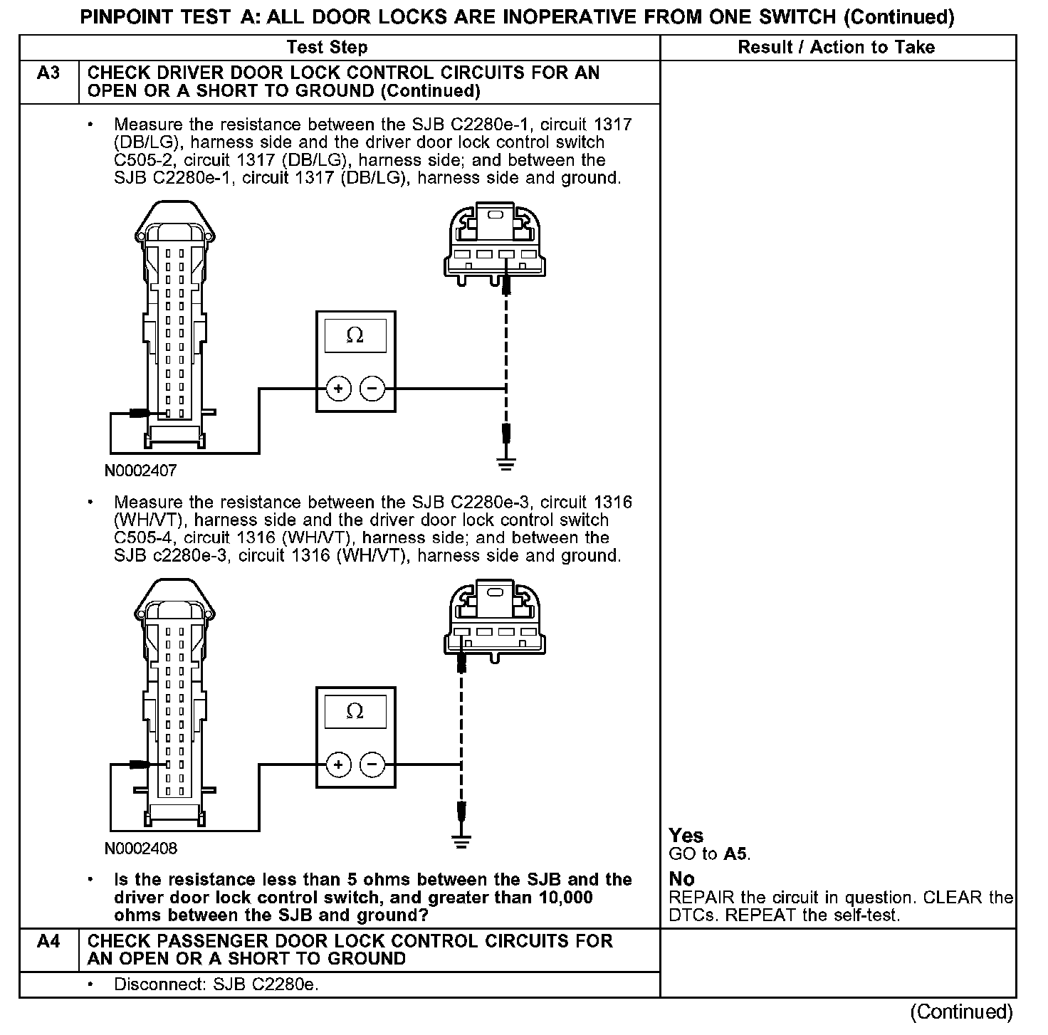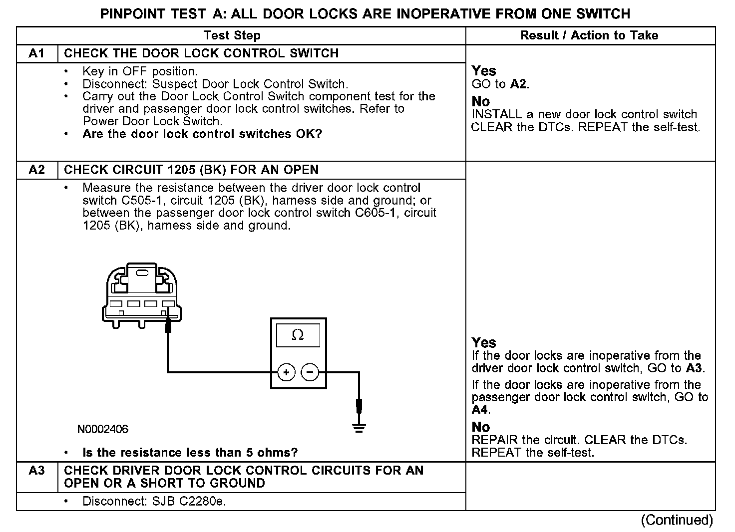 PINPOINT TEST A: ALL DOOR LOCKS ARE INOPERATIVE FROM ONE SWITCHA1-A3: