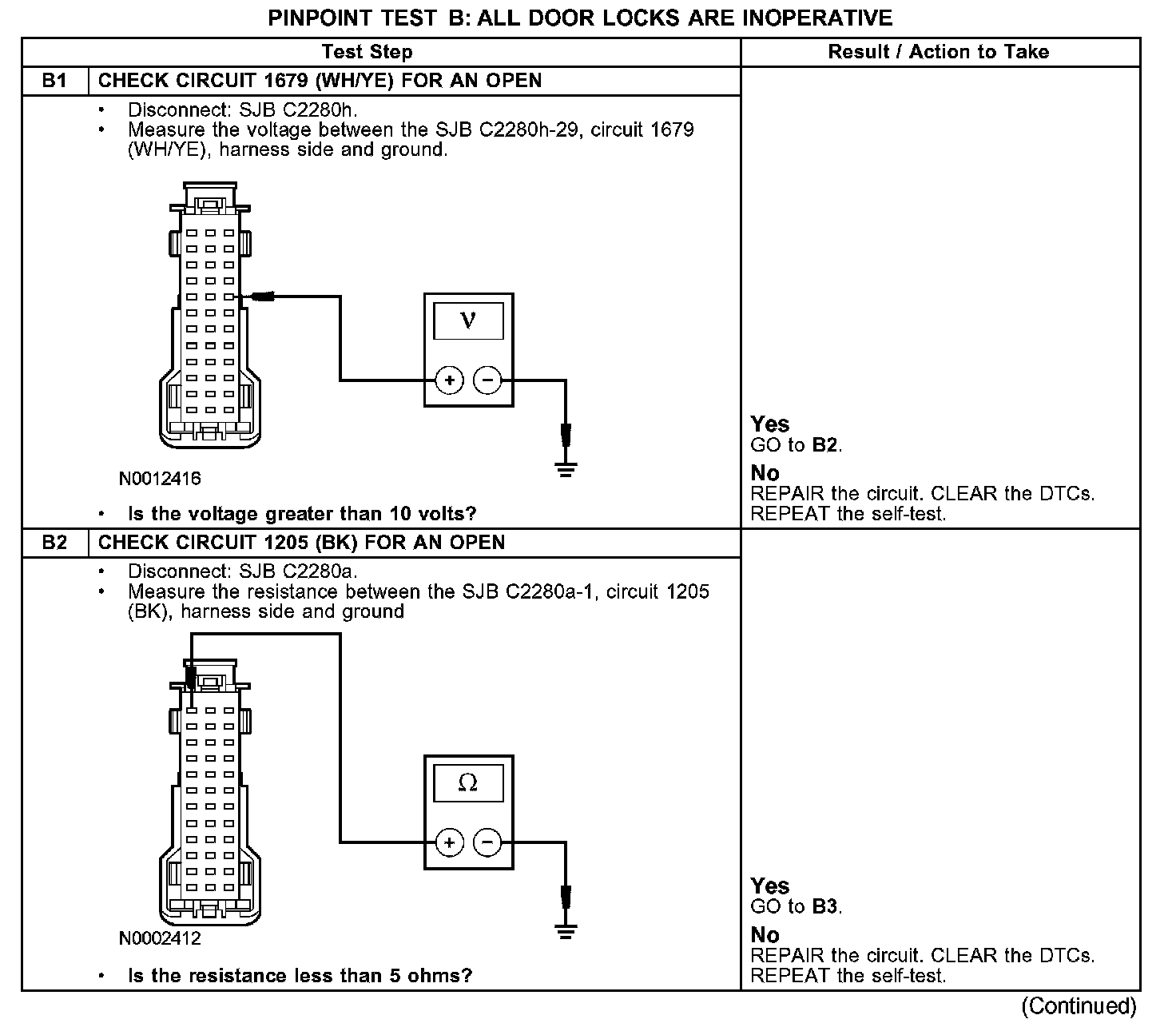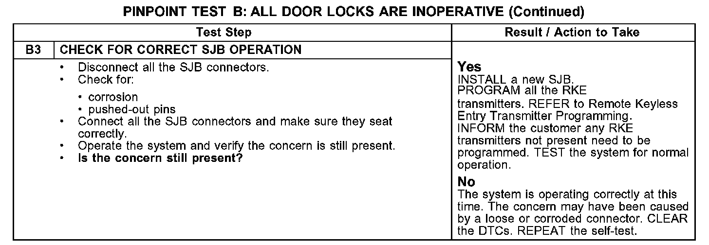 PINPOINT TEST B: ALL DOOR LOCKS ARE INOPERATIVEB1-B2: