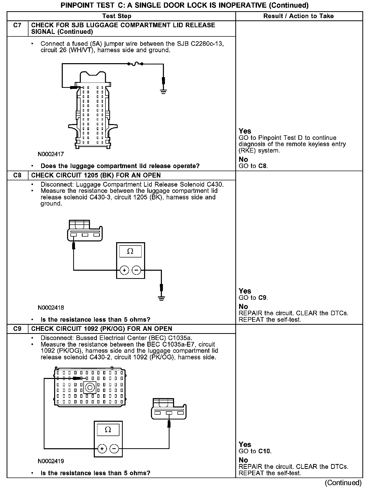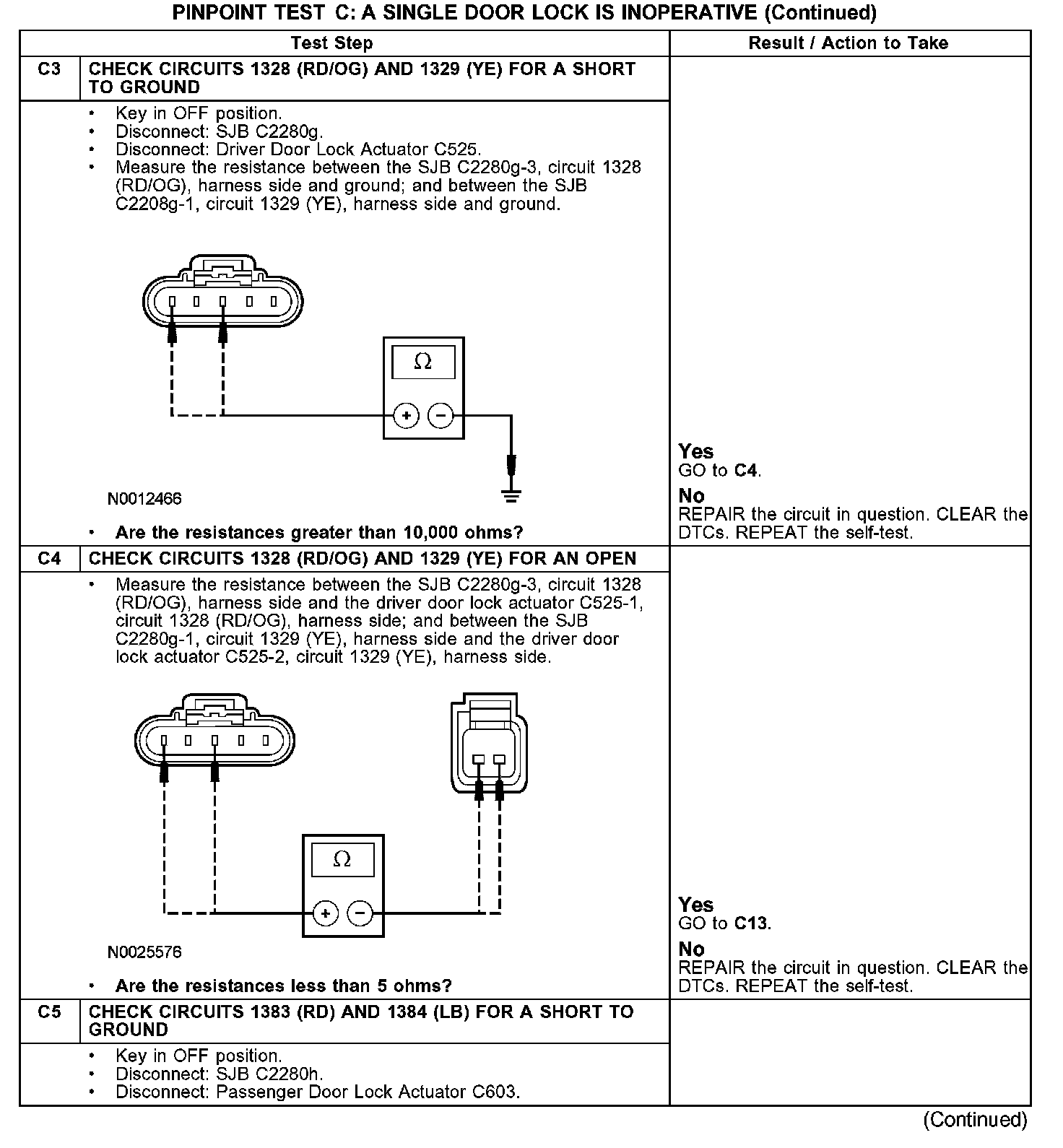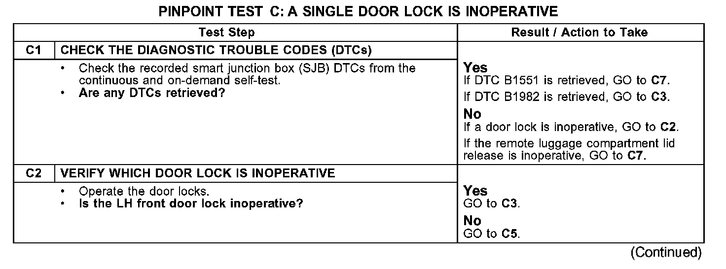 PINPOINT TEST C: A SINGLE DOOR LOCK IS INOPERATIVEC1-C2: