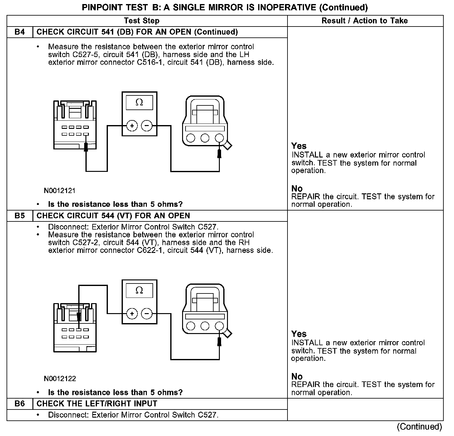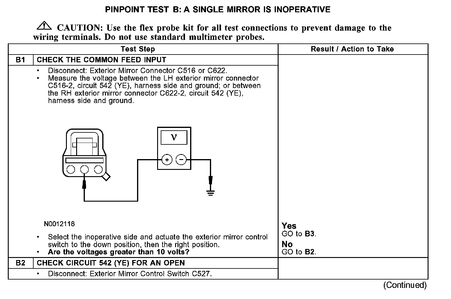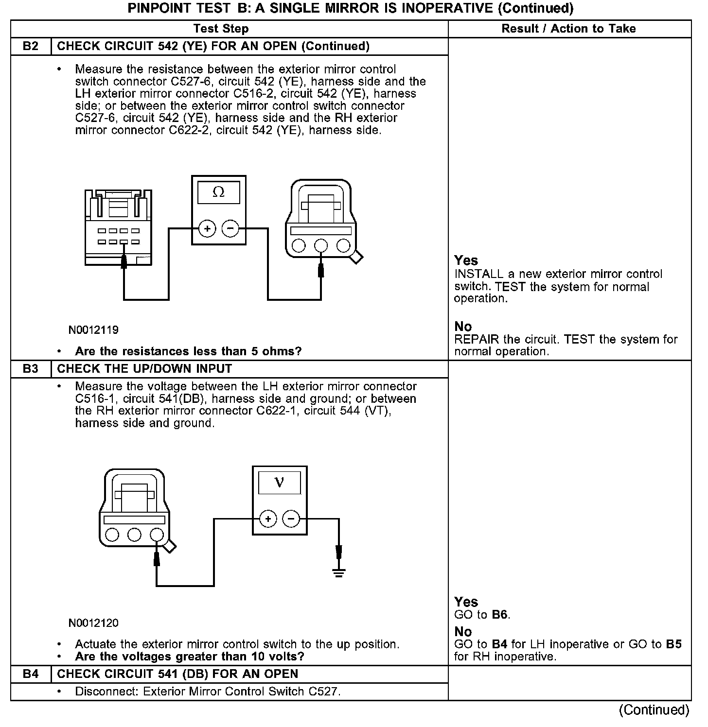 - circuit 542 (YE) open, short to voltage, or short to ground