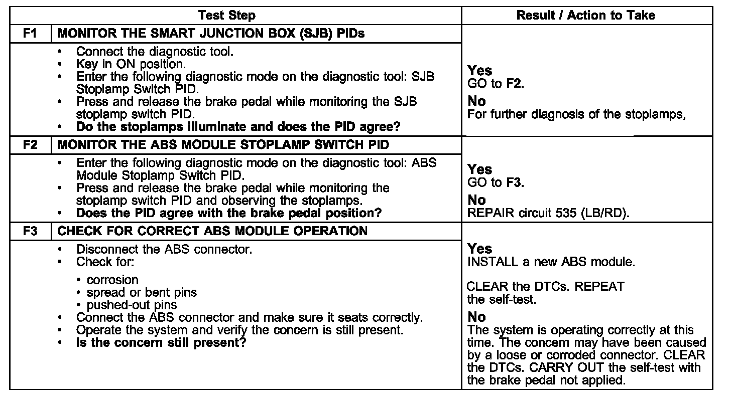 Pinpoint Test F: DTC C1446 Brake Pedal Switch Circuit Failure