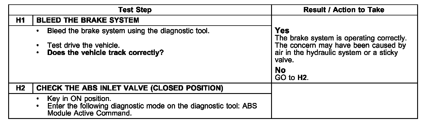 Pinpoint Test H: Poor Vehicle Tracking During AntilockTest H1-H2:
