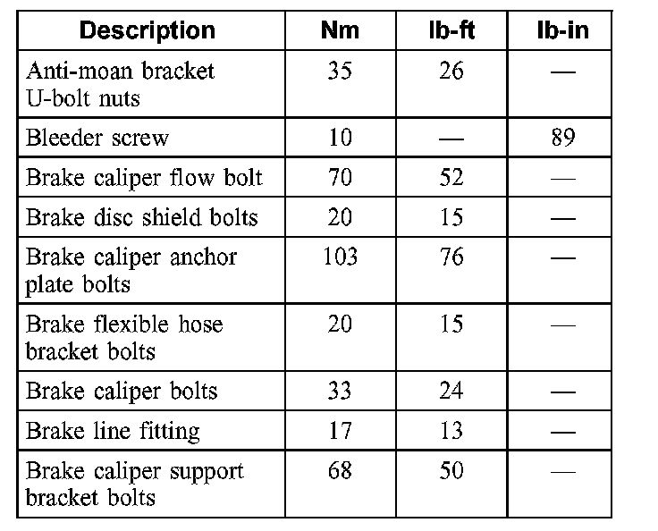 Torque Specifications, Rear