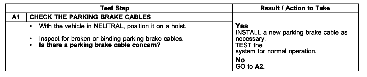Pinpoint Test A: The Parking Brake Will Not ApplyTest A1: