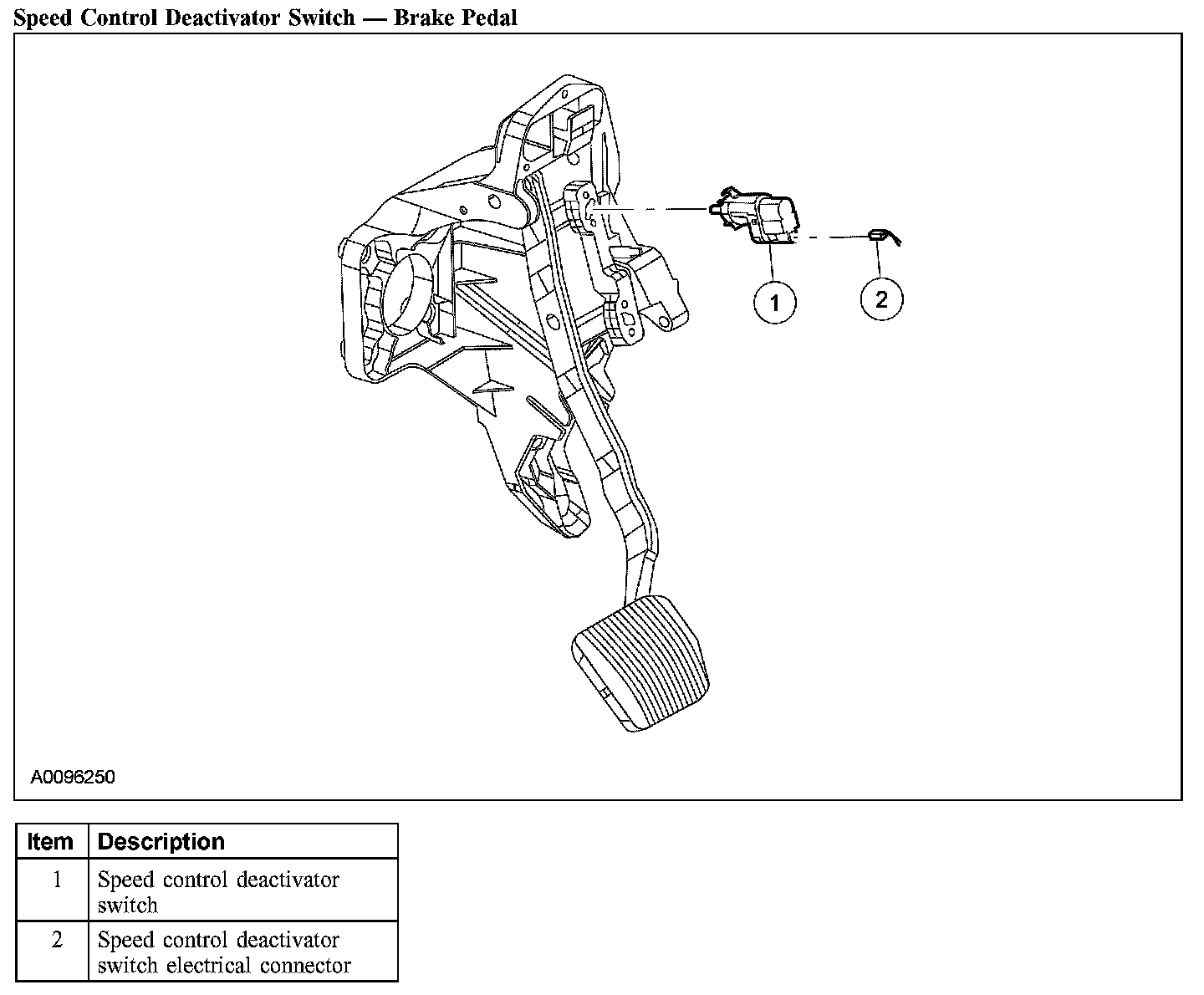 1. CAUTION: Do not press the pedal when removing or installing the speed control deactivator switch, as the switch will be damaged.