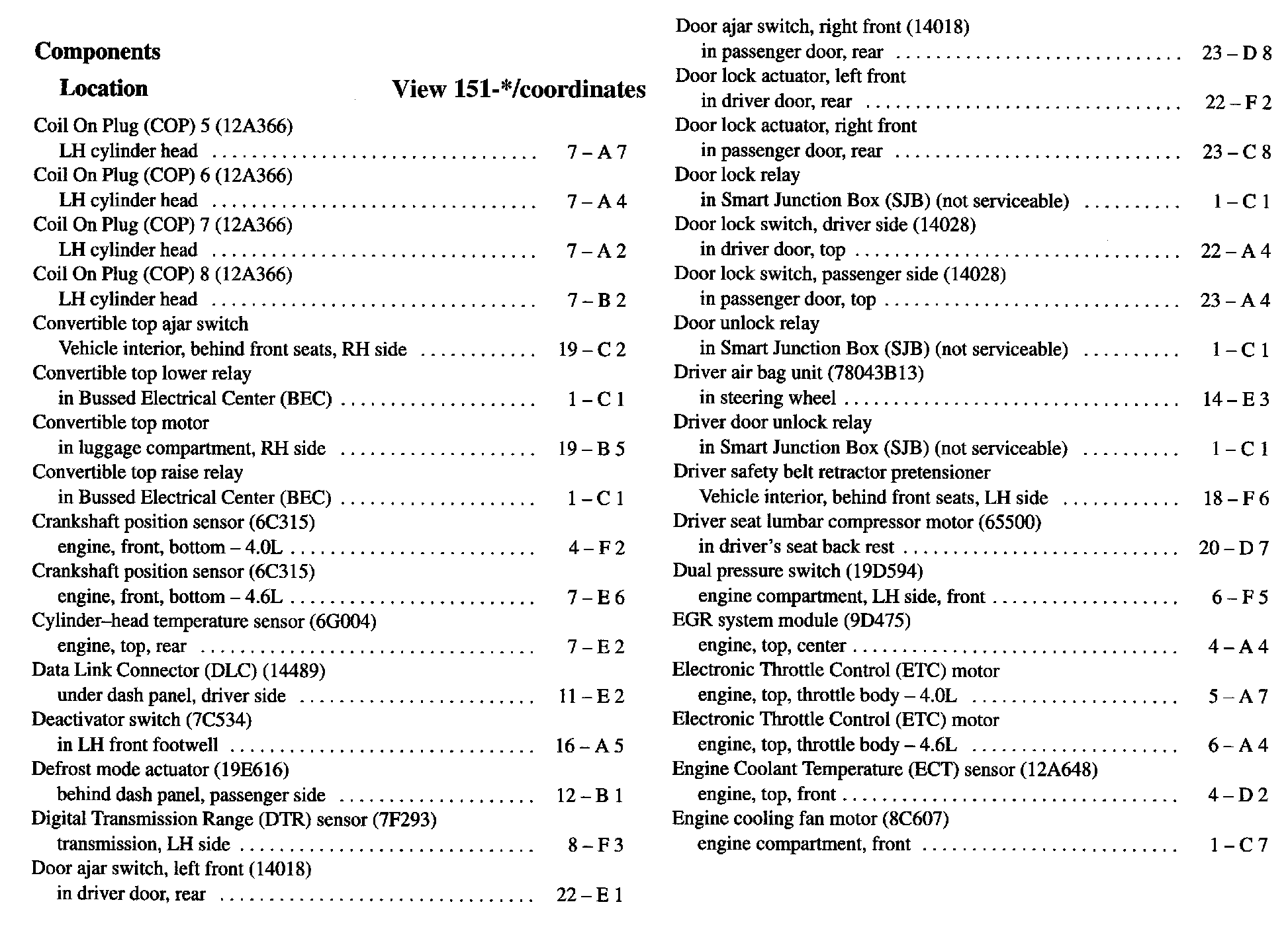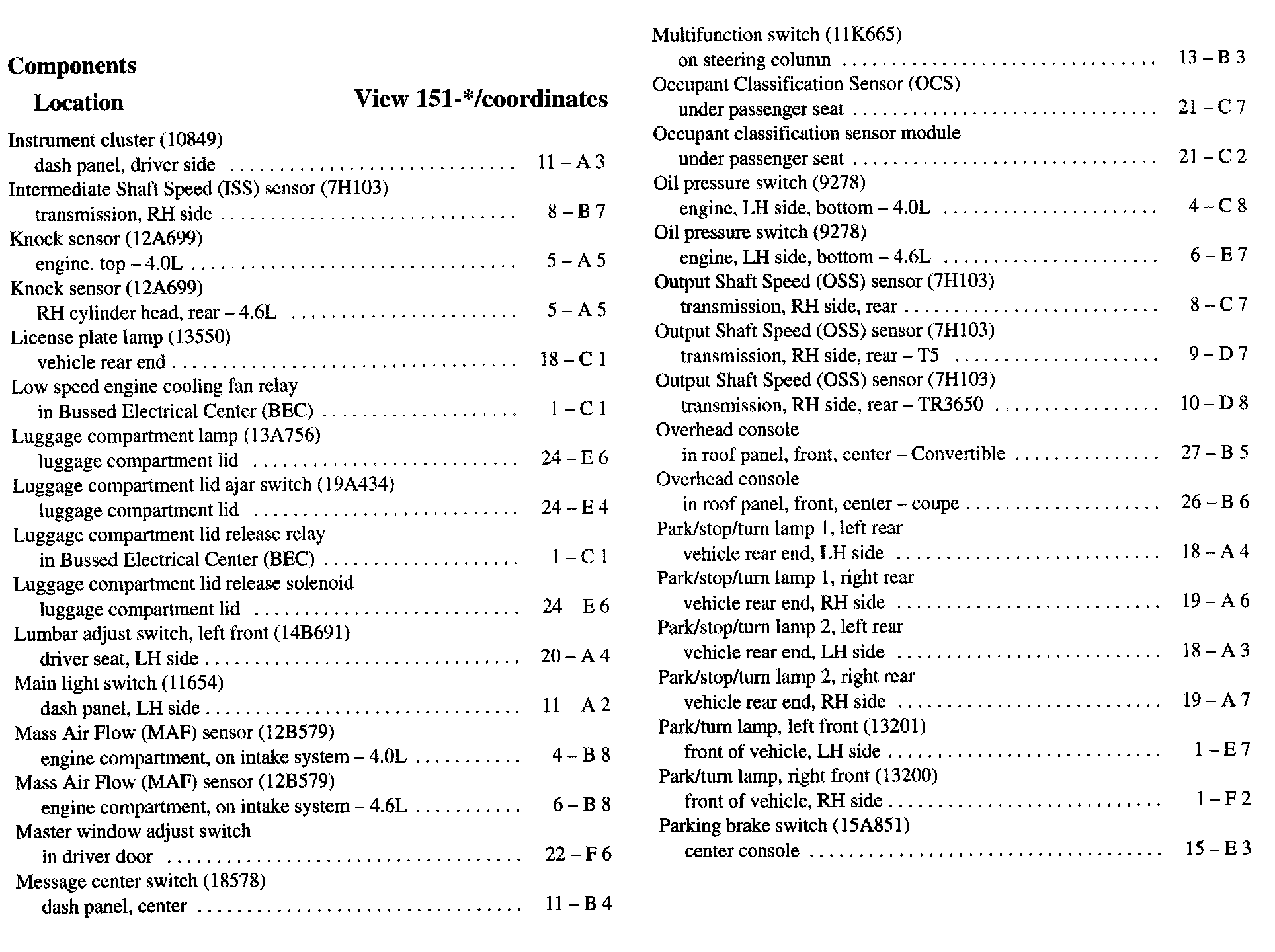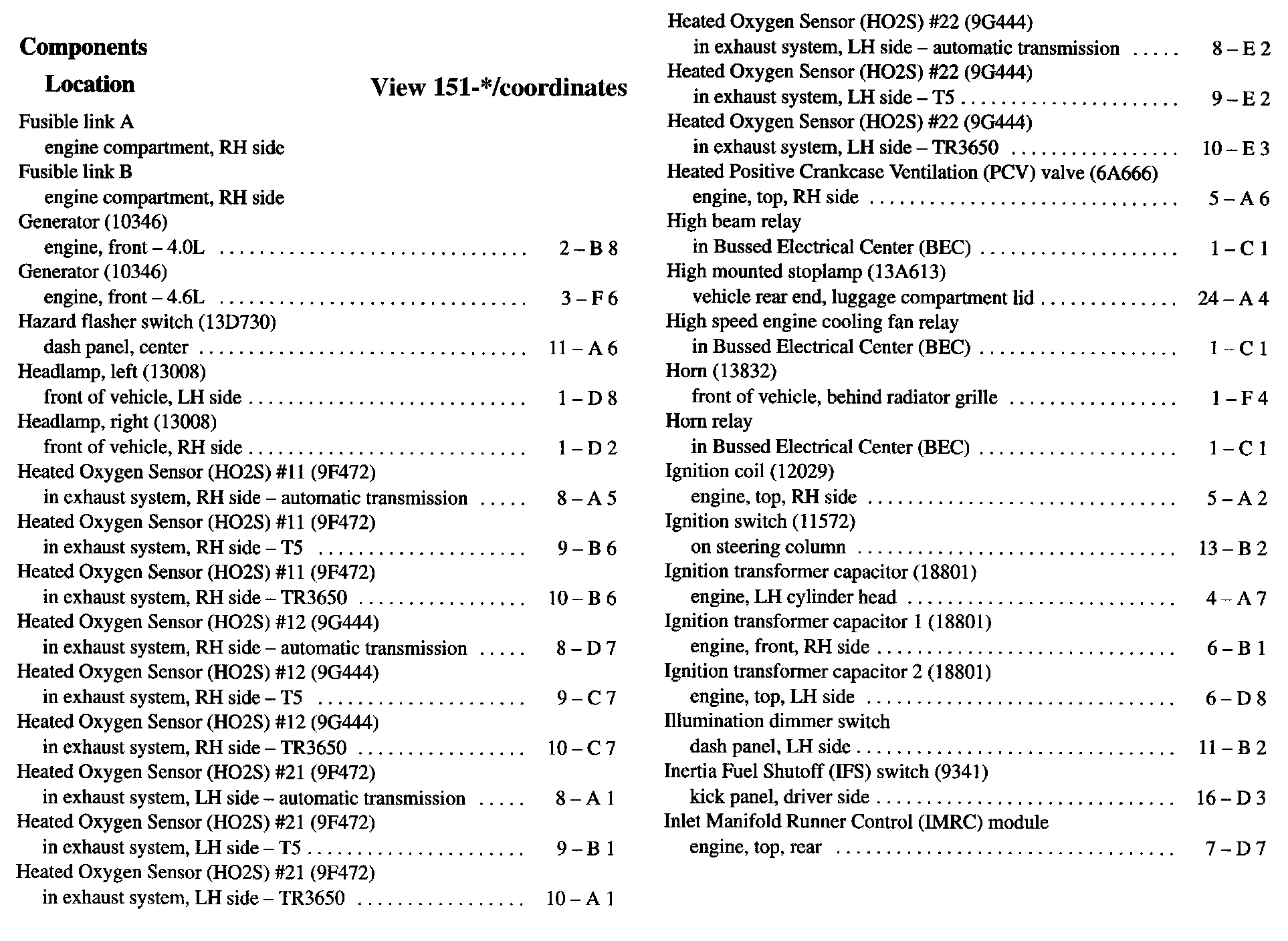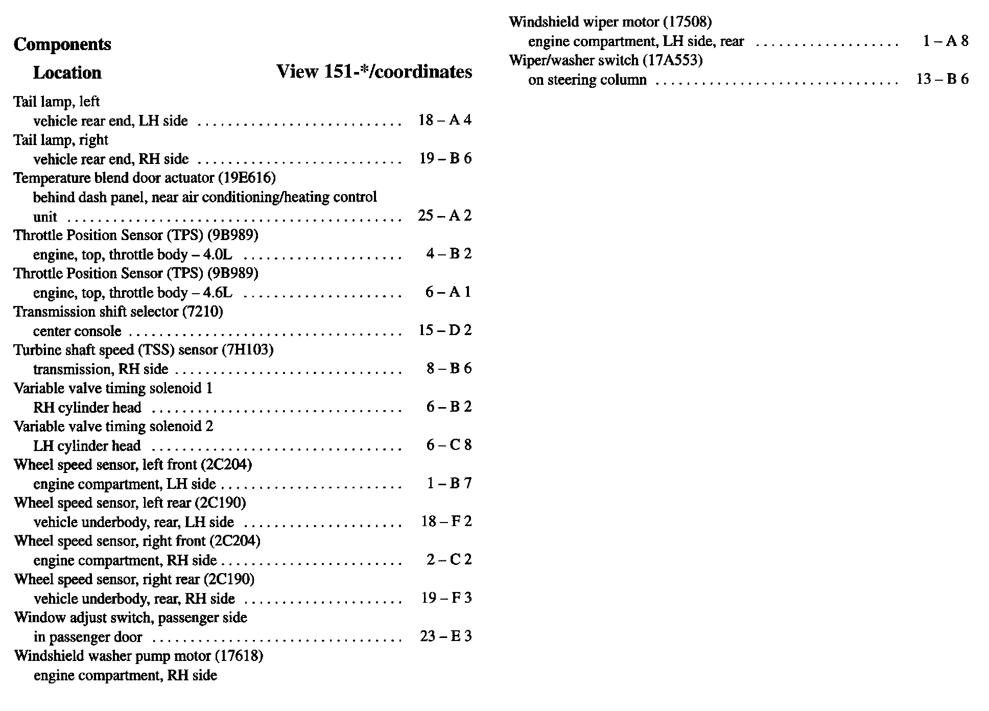 PLEASE NOTE:  If a link on the Component Location Index to a View is not provided, that means that the Component and/or View in question does NOT apply to the vehicle model selected.