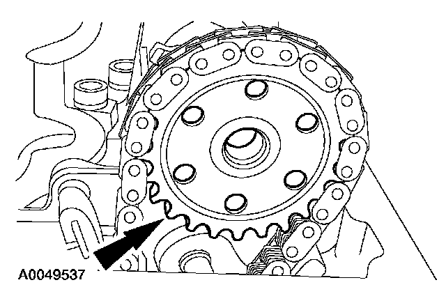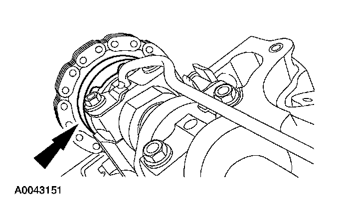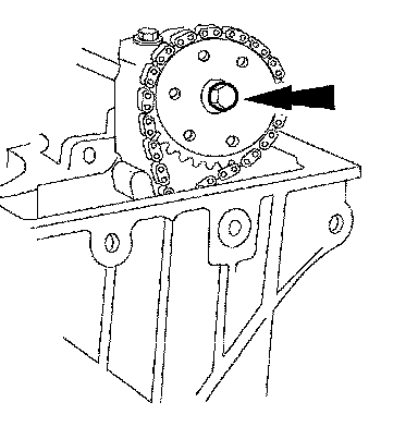 5. CAUTION: The RH camshaft sprocket is a LH threaded bolt.