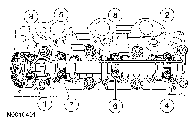 NOTE: After installing the bolts, check the camshaft for free rotation.