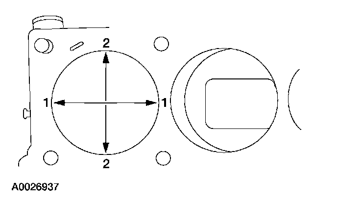 1. Measure the cylinder bore in two directions. The difference is the out of round. Verify the out of round is within the wear limit and bore the cylinder to the next oversize limit.